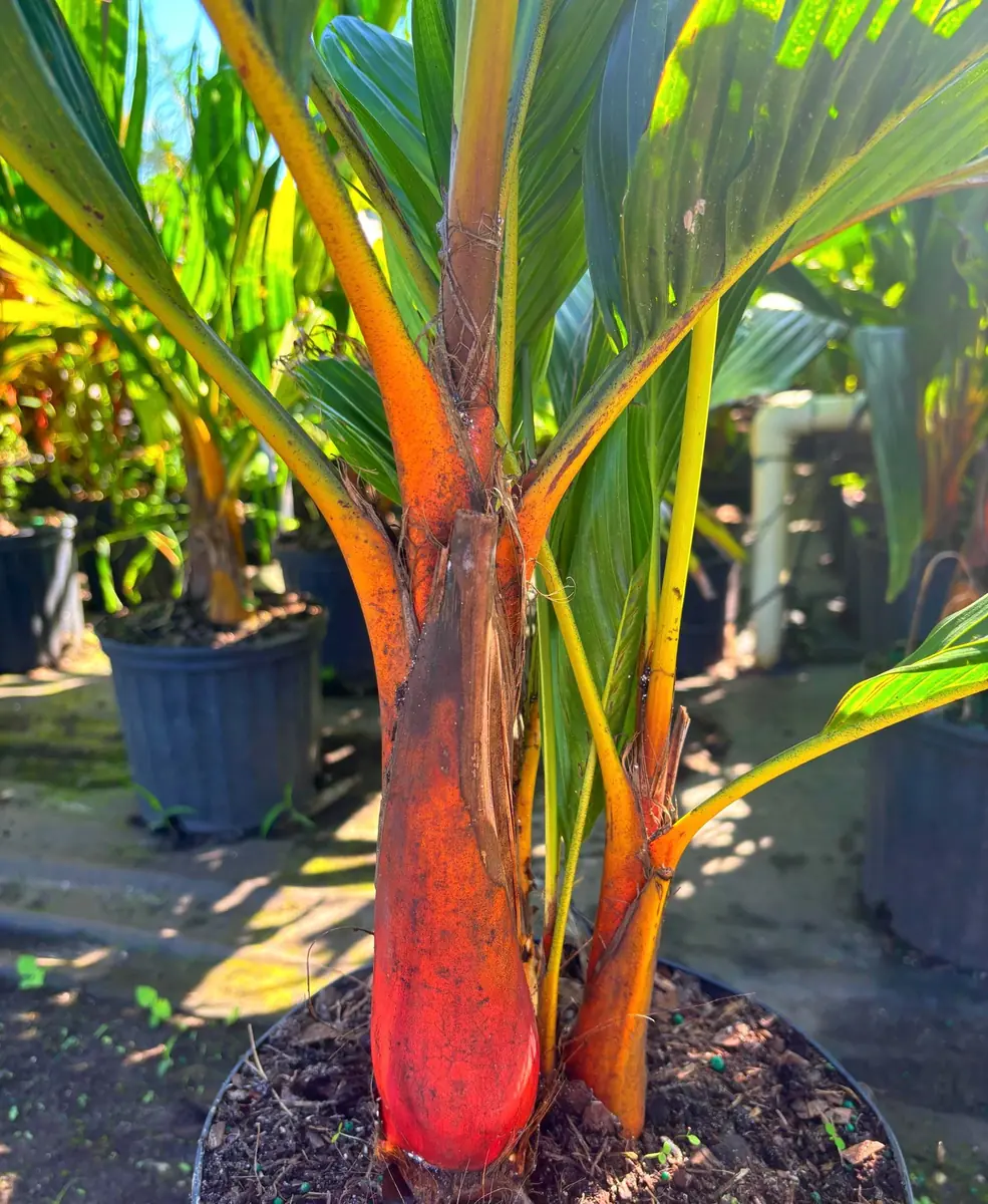 Bring the allure of the tropics into your home or garden with the magnificent orange crownshaft palm live plant, scientifically known as Areca Vestiaria. This truly unique and exotic specimen is cherished for its striking appearance, particularly its vibrant, deep red crownshaft that gives it its common name. Unlike many common palms, the orange crownshaft palm live plant stands out with its distinct coloration and lush foliage, making it a captivating focal point in any setting. This particular offering provides a healthy, fully rooted plant in a 3-gallon pot, ready to thrive in its new environment. Its rarity and captivating beauty make it a prized possession for plant enthusiasts and collectors seeking to create a tranquil, tropical oasis.