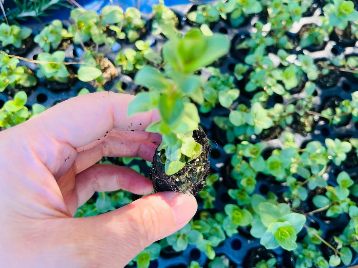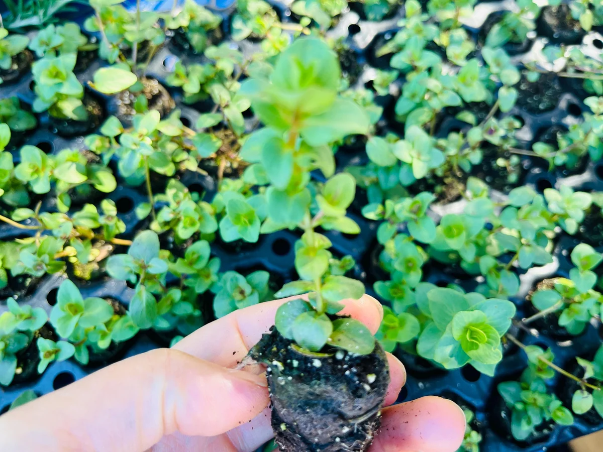The Origanum Kent Beauty live plant typically grows as a compact, semi-evergreen subshrub with a graceful, cascading habit. When mature, it generally reaches a height of 6-8 inches and can spread up to 12-18 inches wide, making it an excellent choice for containers, hanging baskets, and rock gardens where its trailing stems can be fully appreciated. Each seedling is shipped as a well-rooted plug, measuring approximately 1 inch by 1 inch by 1.25 inches, providing a healthy start for your garden or patio. This size allows for easy transplanting into your desired pot or garden bed, ensuring a smooth transition for the young plant.