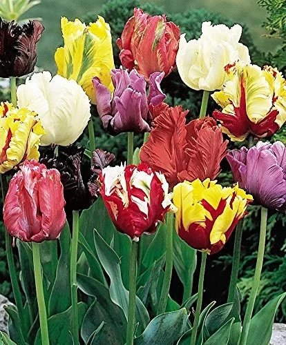 - Vibrant Color Palette: These tulips burst forth in a kaleidoscope of bright, intense colors, ranging from fiery reds and oranges to deep purples, greens, and multi-colored blends. This vibrant display ensures your garden is alive with energy and beauty throughout the late spring season.