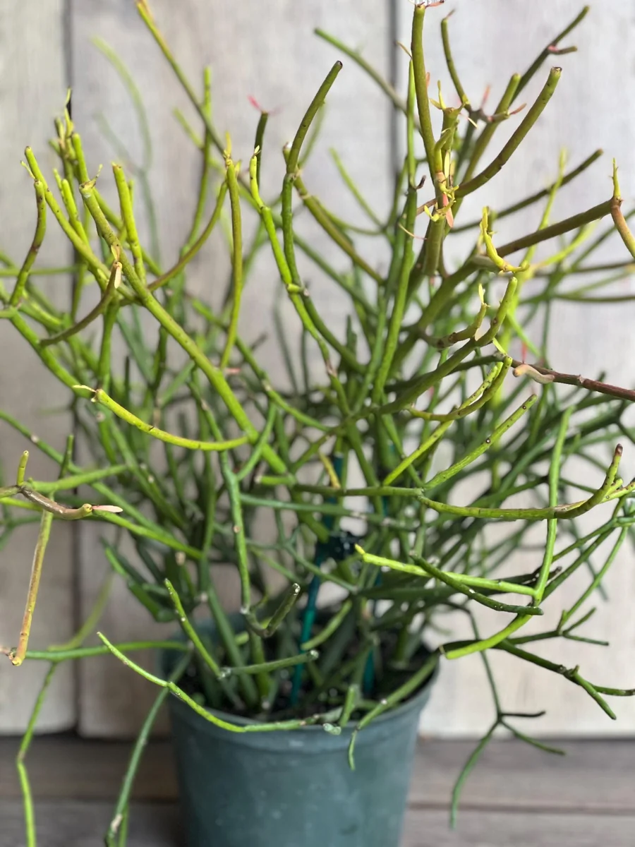 Unique Aesthetic Appeal: Its distinctive, branch-like stems create an abstract, modern sculpture-like appearance that adds a sophisticated and intriguing element to any decor. The occasional pink tips on new growth add a subtle splash of color.