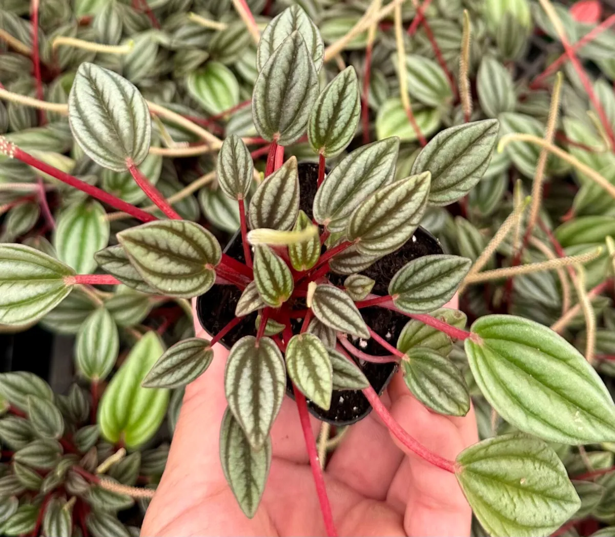 Introduce a touch of tropical elegance to your indoor space with the exquisite peperomia rosso live plant. This captivating cultivar of the Peperomia genus is celebrated for its distinctive foliage, which boasts deep green on the upper surface and a stunning, contrasting red on the undersides and veins. The name ‘Rosso’, meaning ‘red’ in Italian, perfectly encapsulates its vibrant appeal. As a compact and attractive peperomia indoor plant, it makes an ideal choice for adding a pop of color to any room, whether it’s adorning a desk, shelf, or bright windowsill. Renowned for its ease of care and adaptability, the Peperomia Rosso is a favorite among both novice and experienced plant enthusiasts looking for a low-maintenance yet visually striking addition to their collection. This tropical houseplant peperomia offers continuous beauty with its thick, glossy, and slightly succulent leaves.