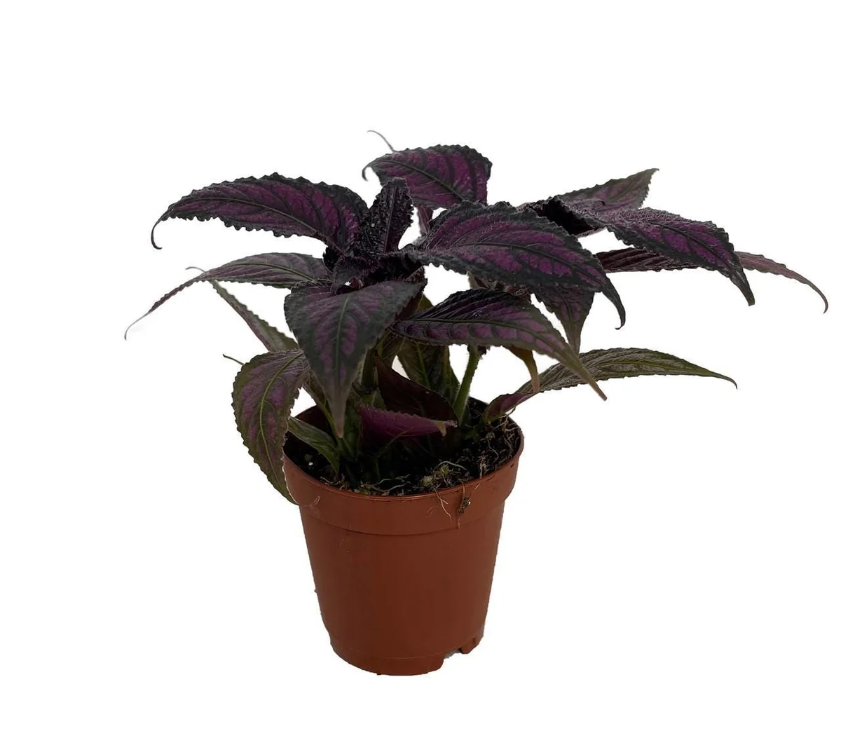 The Persian Shield live plant you will receive is a healthy, actively growing starter plant nestled in a 2.5-inch nursery pot. This size is perfect for transplanting into a larger decorative pot for indoor display or directly into your garden beds. While compact upon arrival, Strobilanthes dyerianus is a relatively fast grower under optimal conditions. Indoors, it typically reaches a height of 1-3 feet with a similar spread, forming a bushy, upright specimen. Outdoors, especially in warmer climates where it can grow perennially or as a long-season annual, it can attain heights of up to 4 feet, creating a striking presence in the landscape. The plant’s growth rate allows for quick enjoyment of its vibrant, metallic purple foliage.