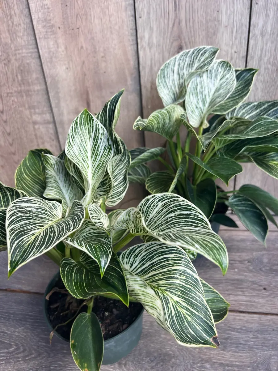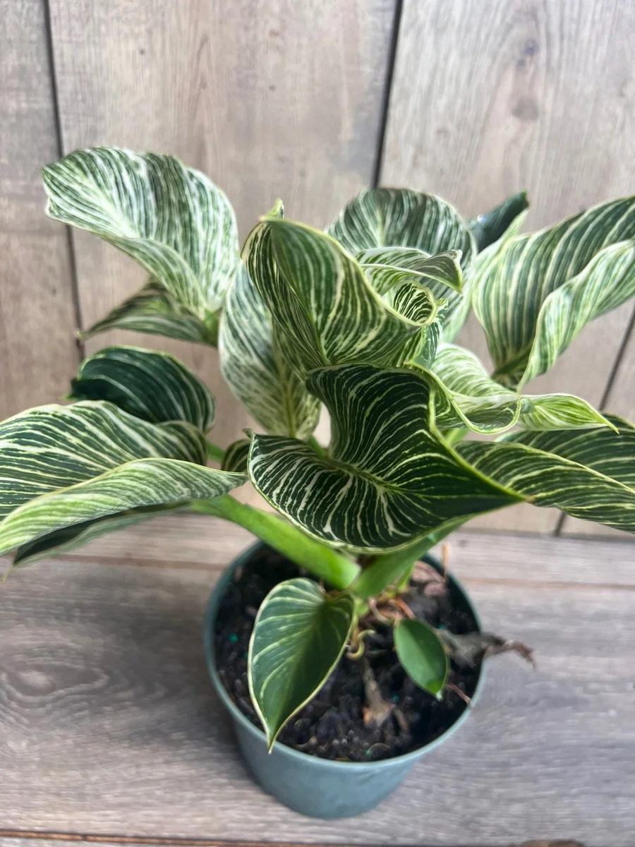 The Philodendron ‘Birkin’ is a cultivar of the Philodendron genus, renowned for its striking variegation and compact growth habit. Unlike some of its vining cousins, the variegated philodendron ‘Birkin’ maintains an upright, bushy form, making it ideal for shelves, desks, or as a floor plant in smaller spaces. Its ease of care and stunning appearance contribute to its popularity, solidifying its status as an all-time favorite among indoor gardeners. This resilient plant is not only beautiful but also relatively forgiving, making it a rewarding addition to almost any home environment. Embrace the allure of this tropical wonder and enjoy the vibrant energy it brings to your living space.