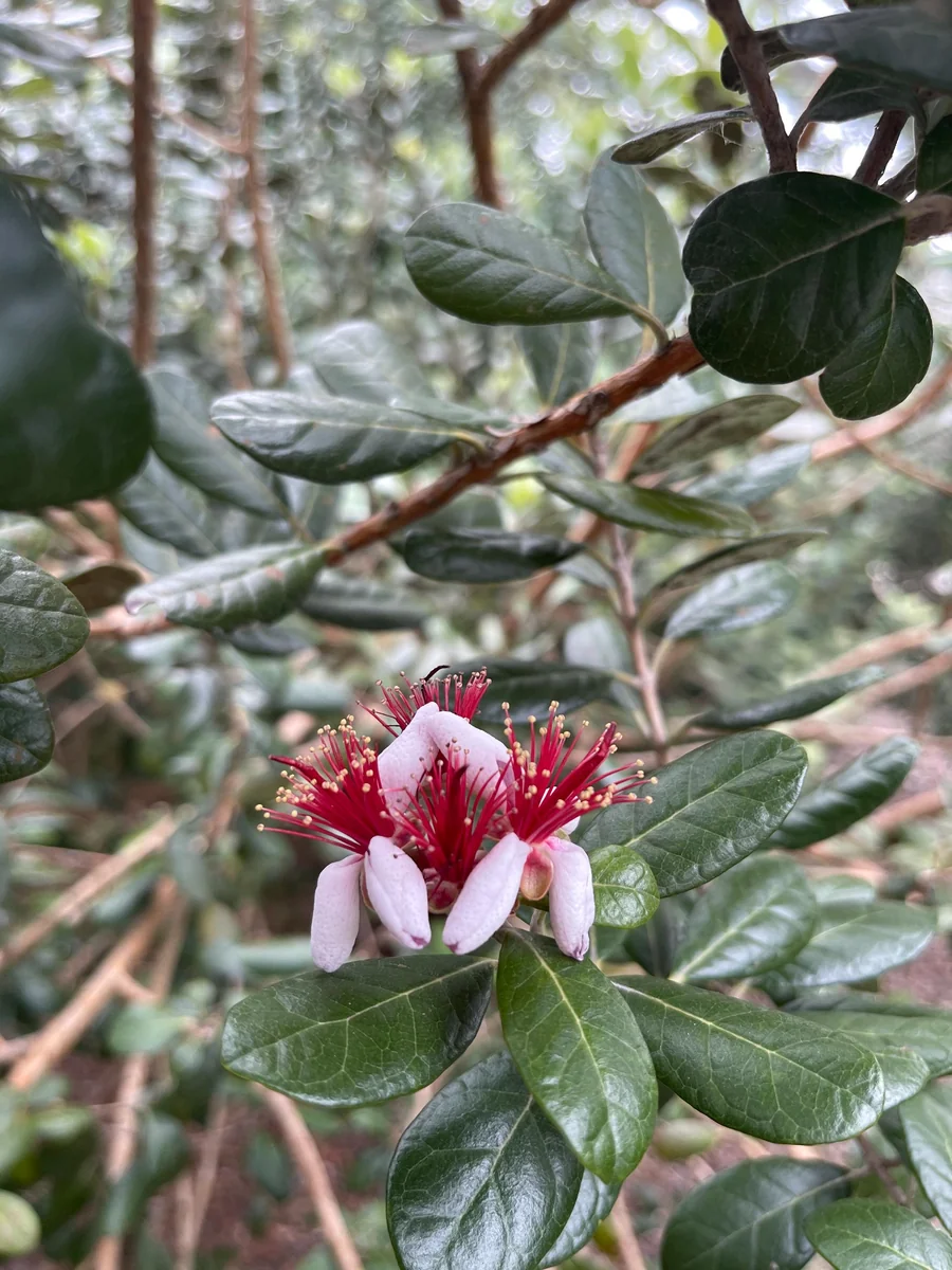 Q: Are the flowers of the evergreen fruit shrub edible? A: Yes, the beautiful pink and white flowers of the pineapple guava live plant are indeed edible and have a sweet, slightly spicy flavor. They can be used to garnish salads or desserts.