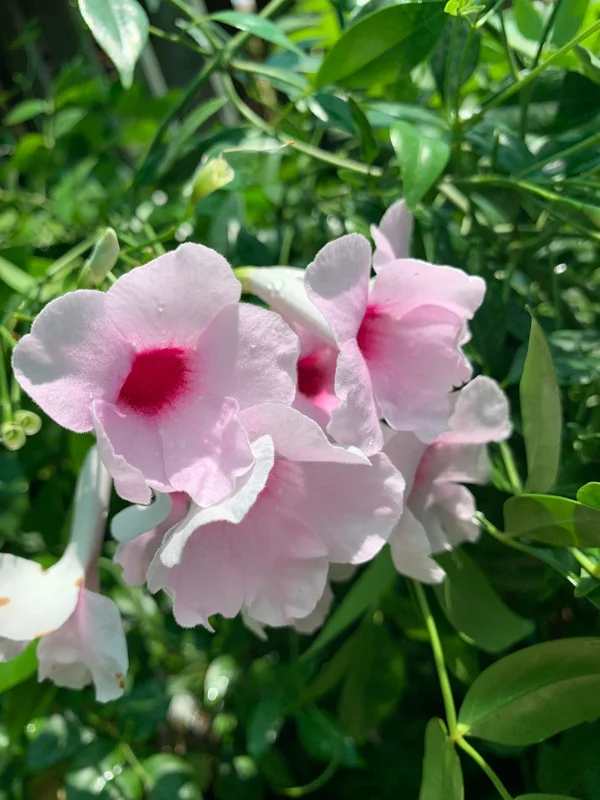 - Q: How much sunlight does it need? A: The pink bower vine prefers full sun to partial shade. For the most abundant blooms, aim for at least 6 hours of direct sunlight per day.