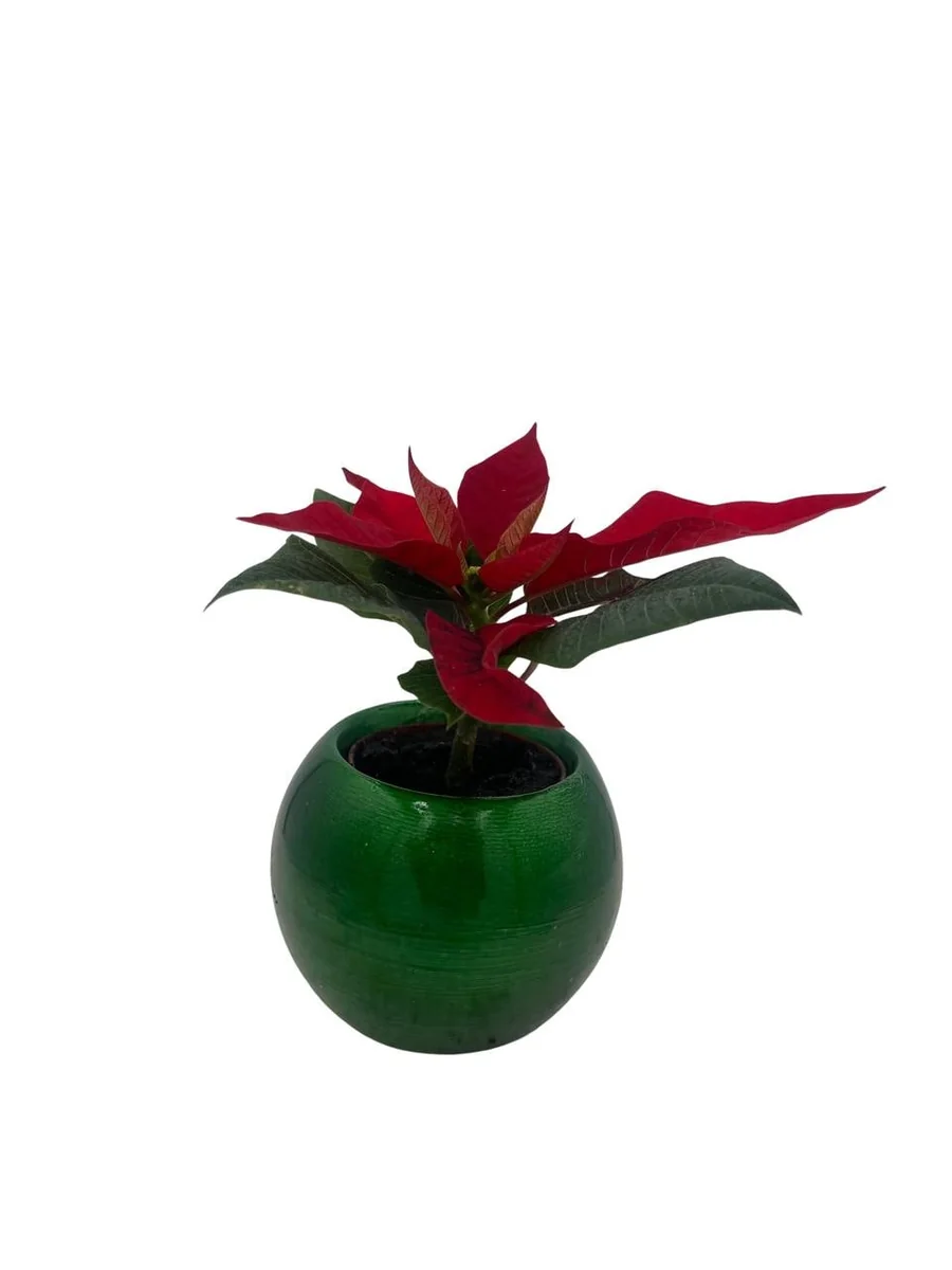 - Q: Is the green globe planter included? A: Yes, the poinsettia live plant comes already potted in the decorative green globe planter as shown, ready for immediate display.