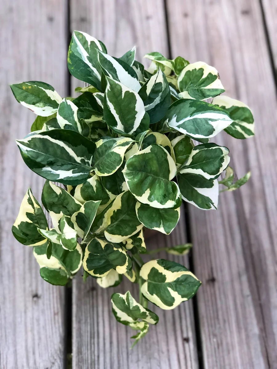 - Stunning Variegation: Features beautiful white and green variegated leaves, providing a bright and elegant contrast that enhances any room’s decor. This white variegated Pothos stands out.