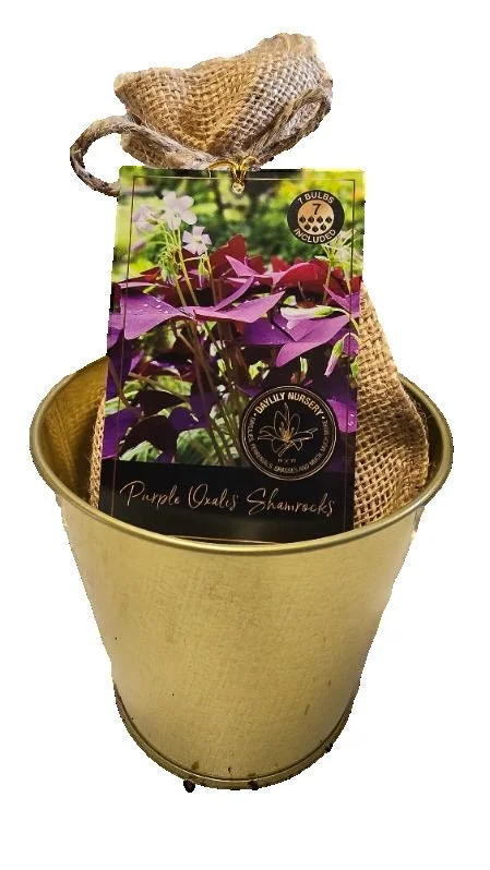 This purple shamrock growing kit is designed for convenience and success, providing all the components needed to start your plant. The kit includes 5 premium oxalis triangularis bulbs, which are the dormant structures from which the plants will emerge. These bulbs are ready for planting upon arrival. The attractive gold tin pot measures approximately 4-5 inches in diameter, offering a stylish container that complements the plant’s vibrant foliage and is suitable for a desktop or windowsill. The professional growing medium included is specifically formulated to provide optimal drainage and nutrients for purple shamrocks, supporting healthy root development and robust growth.