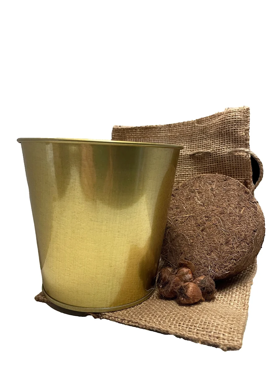 - Q: What condition will the kit arrive in? Is it shipped in soil? A: The kit will arrive with 5 dormant oxalis triangularis bulbs, an attractive gold tin pot, and a separate bag of professional growing medium. You will need to plant the bulbs upon arrival following the included instructions.