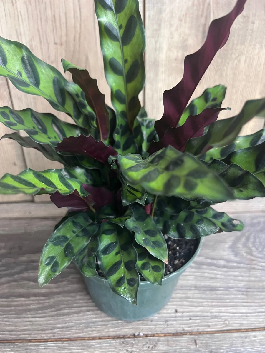 This Rattlesnake Plant live arrives as a vibrant, established plant in a 6-inch nursery pot. Typically, Calathea lancifolia indoor plants can grow to an impressive height of up to 30 inches (76 cm) indoors, creating a magnificent specimen. With proper Calathea houseplant care, it will develop a lush, wide form with large, striking leaves. The growth rate is medium, meaning it will gradually fill out its space without becoming overgrown too quickly. This plant is shipped in its nursery pot, nestled securely to ensure it arrives healthy and ready to be placed in your desired location. It is a mature plant, ready to display its unique foliage and contribute to your home’s aesthetic.