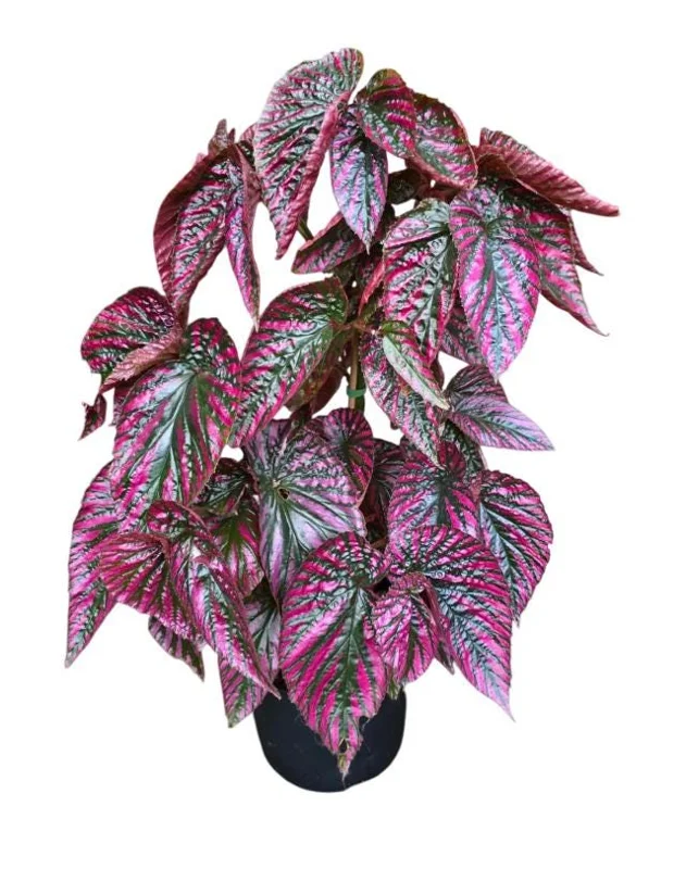 The plant will arrive ready for transplanting into your chosen container or garden spot. Its unique red coloration will become more pronounced with proper care and light conditions. While bloom times vary among begonia types, and some can bloom year-round indoors, the primary appeal of this specific variety lies in its stunning foliage. This particular exotic begonia houseplant is perfect for adding a vibrant, living accent to your home or a shaded garden bed. Ensure you provide it with adequate space to grow and display its full beauty.