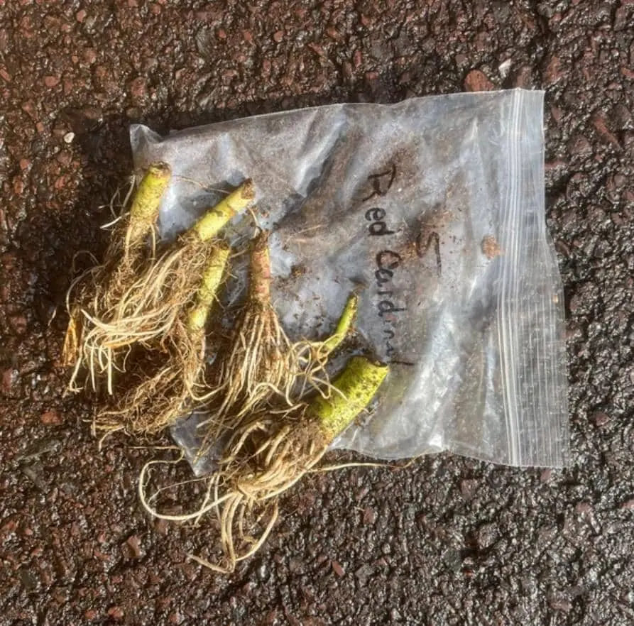 - Q: What condition will the bare roots arrive in? A: Your Red Cardinal Flower bare root plant will arrive dormant, carefully packaged to ensure the roots are healthy and ready for planting. They will not have foliage or flowers upon arrival.