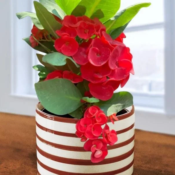 - Vibrant Year-Round Color: Unlike many plants that are seasonal bloomers, the Euphorbia Milii plant can produce its bright red bracts continuously in warm climates, ensuring a consistent pop of color in your home or garden. This makes it an exceptional choice for those seeking vibrant, long-lasting botanical displays, providing beauty throughout the year.