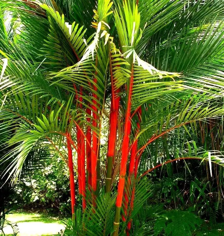 - Stunning Visual Appeal: The most striking feature is its brilliant red crownshaft and petioles, earning it the ‘lipstick’ moniker. This vibrant coloration provides an unparalleled visual accent, making it a focal point in any setting. The lush green fronds further enhance this dramatic contrast.