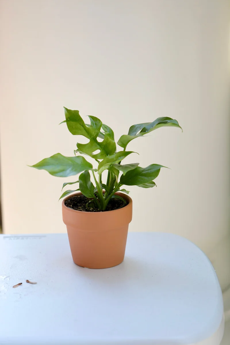 The Rhaphidophora Tetrasperma live plant is highly sought after for its characteristic fenestrated leaves, which develop intricate splits as the plant matures. This architectural beauty provides a sophisticated and modern look, effortlessly enhancing various interior design styles. Whether placed on a shelf, desk, or allowed to climb a moss pole, the Mini Monstera quickly becomes a focal point. Its adaptability and charming appearance make it a favorite among houseplant lovers, providing continuous visual interest as it grows and develops its iconic leaf patterns. Experience the joy of cultivating this popular aroid and watch it flourish in your home.