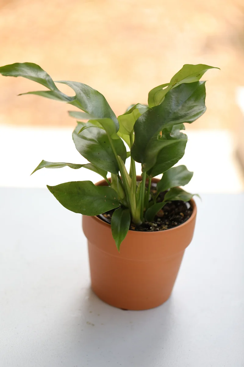 For optimal growth, the easy care indoor plant prefers a well-draining potting mix rich in organic matter. A chunky aroid mix, often containing ingredients like perlite, orchid bark, and coco coir, is highly recommended to ensure good aeration and prevent waterlogging. Maintain average room temperatures between 65-80°F (18-27°C) and moderate to high humidity. While it tolerates average household humidity, it will flourish with higher levels, which can be achieved through misting, a pebble tray, or a humidifier. Fertilize your Rhaphidophora Tetrasperma live plant once every four months during the growing season (spring and summer) with a balanced liquid fertilizer diluted to half strength. Avoid fertilizing in fall and winter when the plant’s growth slows.