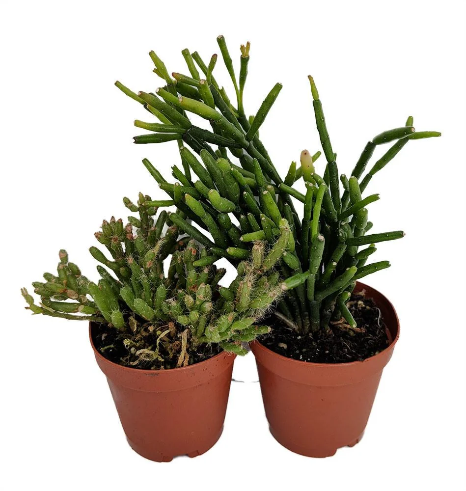 Introduce a touch of whimsical greenery to your home with the Rhipsalis Drunkard’s Dream Cactus, often affectionately called the Spice Cactus. This unique and captivating succulent is renowned for its cascading, segmented stems that create a lush, jungle-like appearance. Unlike traditional desert cacti, Rhipsalis are epiphytic, typically growing on trees in their native rainforest habitats, which means they prefer filtered light and higher humidity. This offering includes two healthy live plants, each nestled in a 2-inch pot, ready to bring life and beauty to any indoor setting. The Rhipsalis Drunkard’s Dream Cactus is an excellent choice for those seeking a distinctive, low-maintenance houseplant that offers continuous visual interest.