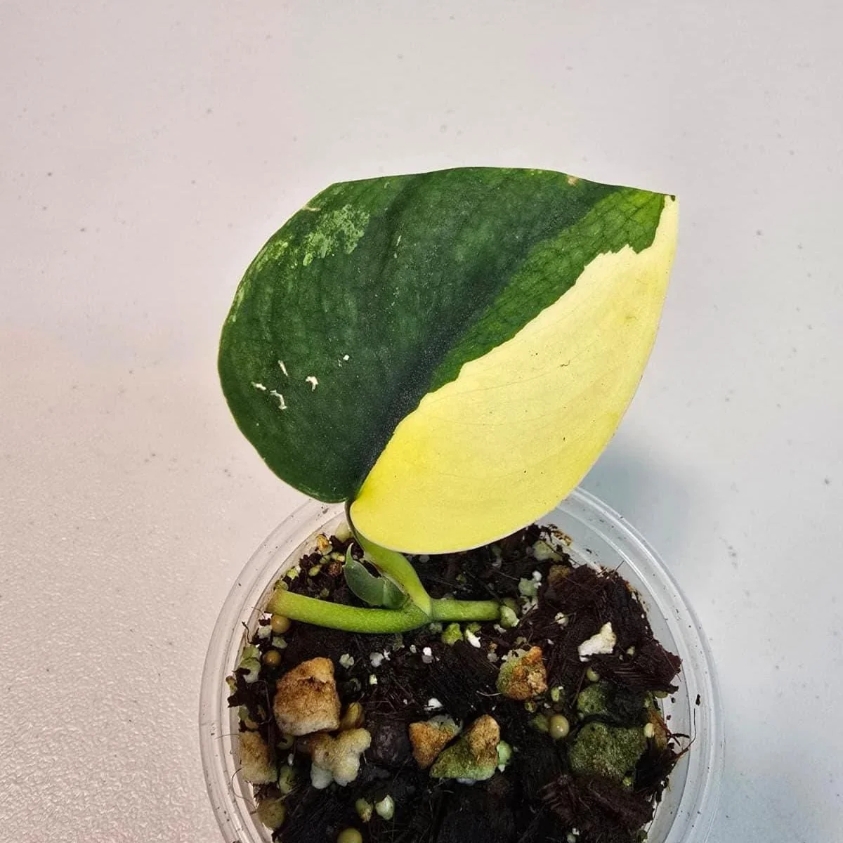 The variegated scindapsus pictus jade satin is not just a visual delight; it’s also a relatively easy-to-care-for indoor plant, making it suitable for both experienced gardeners and those new to the world of rare houseplants. Its striking appearance makes it an instant focal point, drawing attention with its unique leaf patterns. Whether you’re expanding an existing collection or starting a new one, this ‘Jade Satin’ variety promises to be a rewarding and beautiful addition to your living space, contributing a touch of lush, tropical charm.