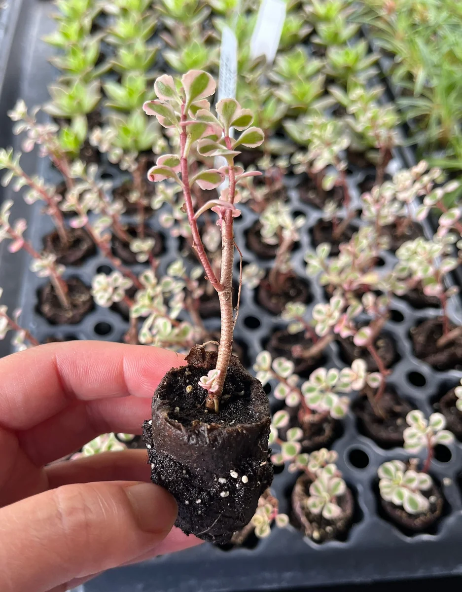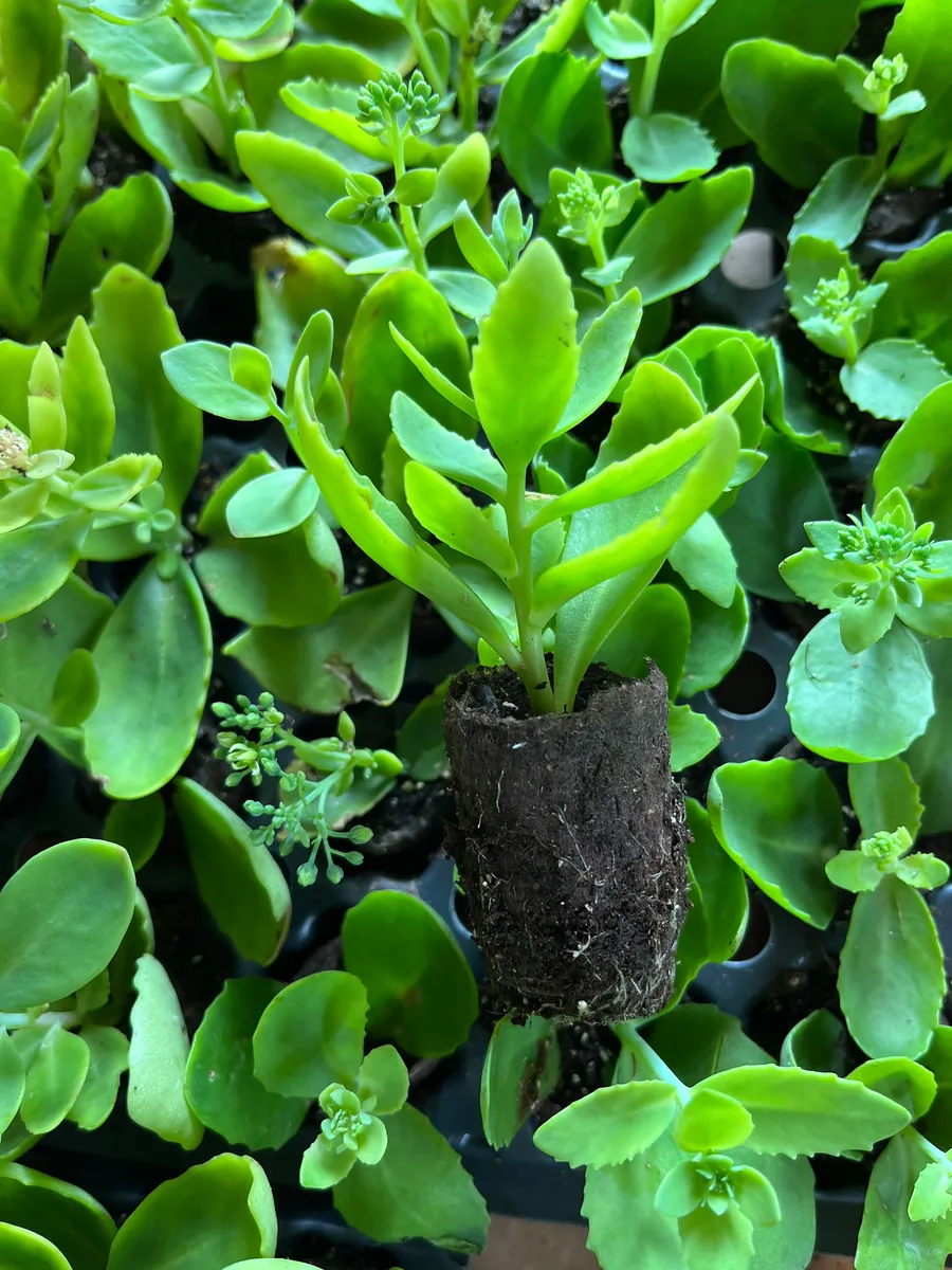 - Q: What size plug will my sedum live plant arrive in? A: Each seedling comes in a small plug-size 1″ X 1″ X 1 1/4” container, ensuring a healthy root system for transplanting.