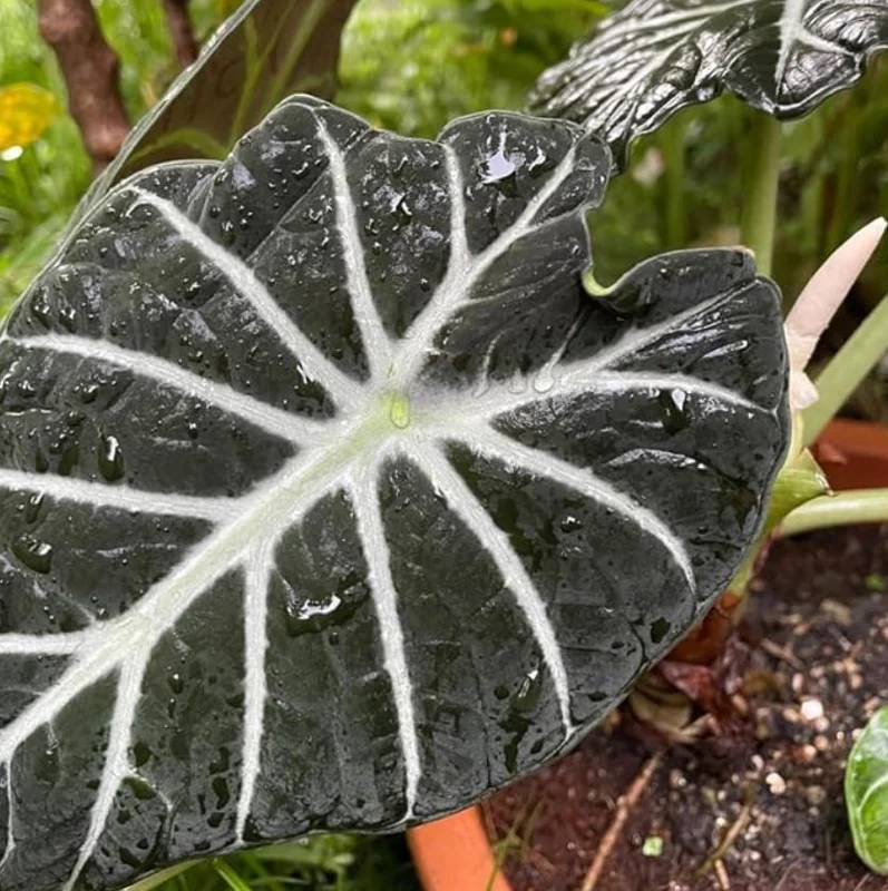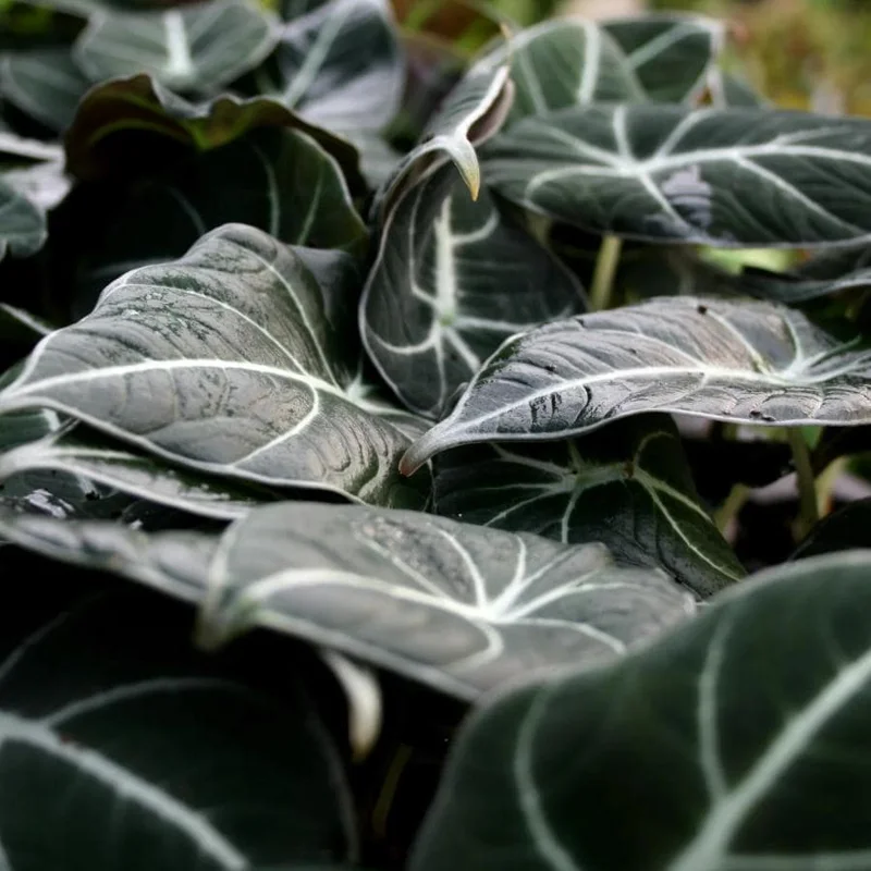 - Dramatic Visual Appeal: The most striking feature of the black velvet alocasia live plant is its distinctive foliage. The heart-shaped, deep emerald, almost black leaves with their velvety texture are dramatically veined with bright silver, creating an elegant and bold statement piece for any interior.