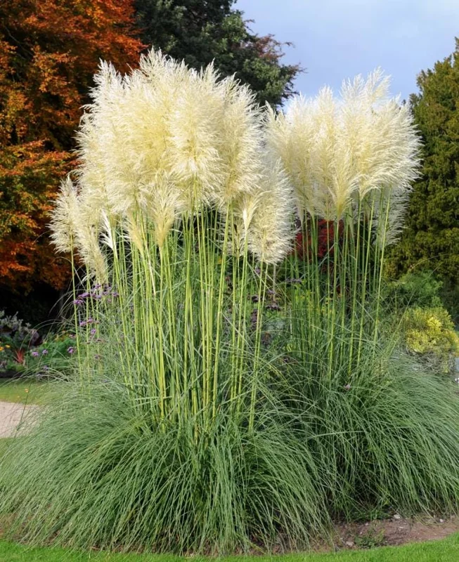 When planting your Cortaderia Selloana plant starters, ensure the soil is loose and aerated. Water new plants deeply and regularly until they are well-established. Once mature, pampas grass is quite drought-tolerant and typically only needs supplemental watering during extended dry spells; rainfall is usually sufficient for established plants. Fertilization is generally not necessary for established plants growing in good soil, but a light application of a balanced slow-release fertilizer in early spring can promote vigorous growth in poorer soils. One of the most important aspects of ornamental grass for garden maintenance is pruning. Cut back the grass to about 6-12 inches from the ground in late winter or early spring before new growth begins. This encourages fresh growth and maintains the plant’s tidy appearance. Always wear gloves and long sleeves when handling pampas grass, as the leaf blades can be sharp.