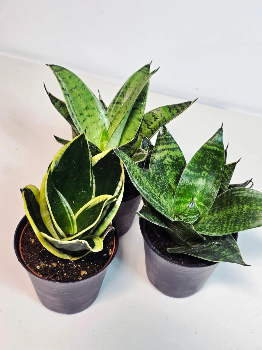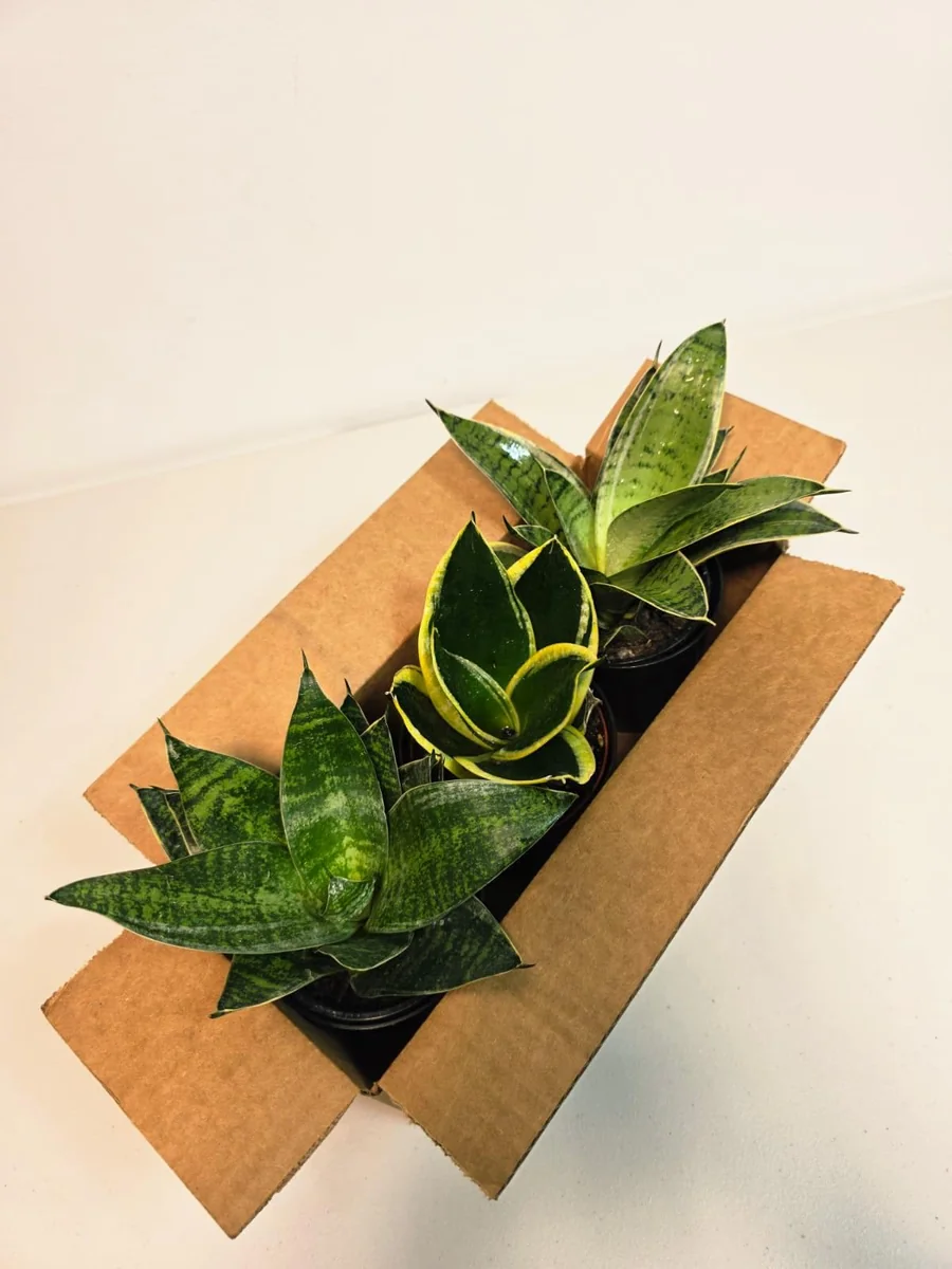 - Q: What condition will the plants arrive in? A: You will receive a set of three healthy, live Sansevieria plants, each securely potted in its 4-inch nursery container with soil. They are carefully packaged to ensure safe transit.
