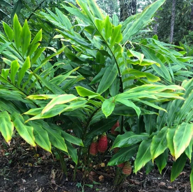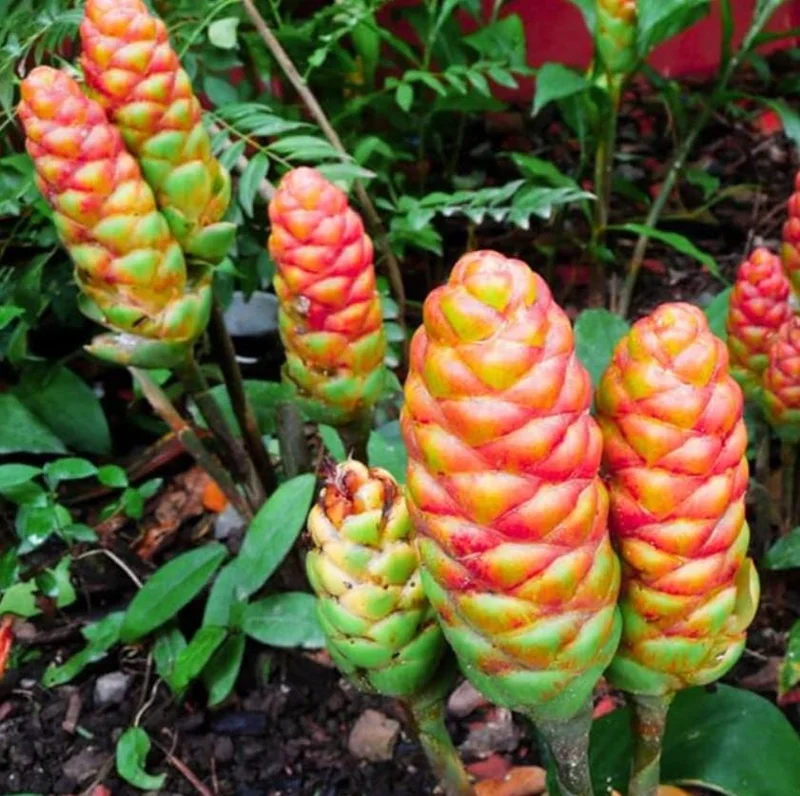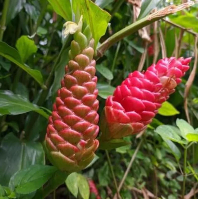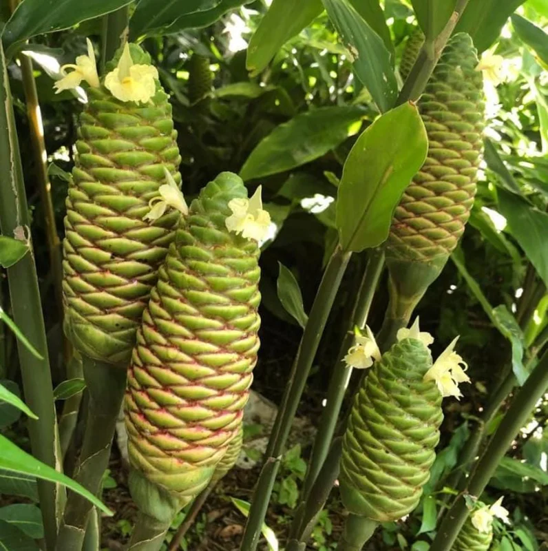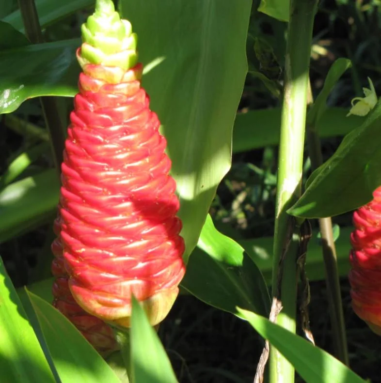 - Unique Ornamental Value: The striking pinecone-shaped flower heads and lush green foliage make the Awapuhi plant a focal point in any garden. Its tropical appearance instantly elevates the ambiance, creating an exotic and vibrant atmosphere. The red bracts offer a beautiful contrast against the green leaves.