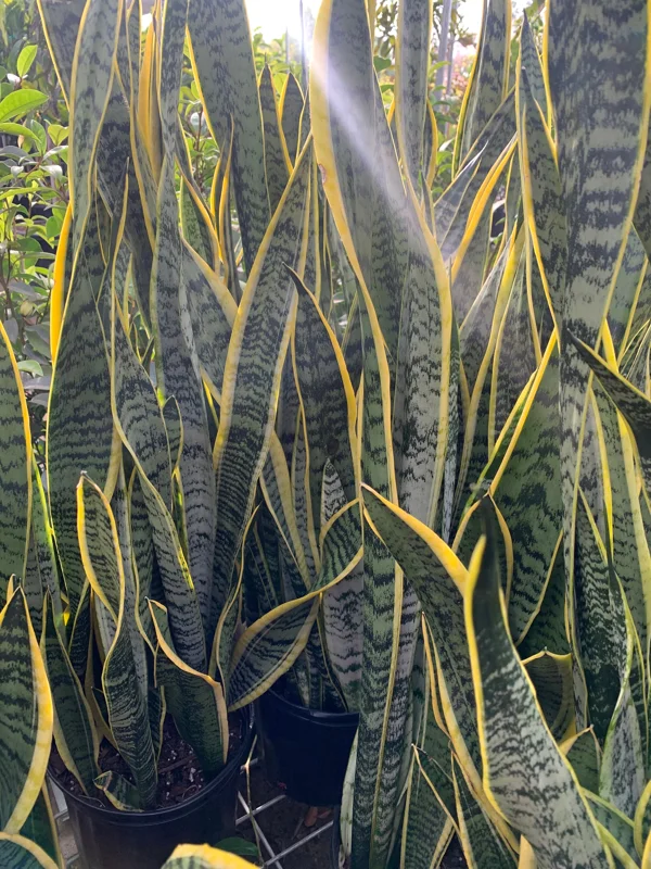 Introduce natural elegance and clean air into your living space with the stunning snake plant variegated, scientifically known as Sansevieria Trifasciata. This popular indoor plant is celebrated for its striking appearance and remarkable resilience, making it a perfect addition for both seasoned plant enthusiasts and beginners alike. Our variegated snake plant features distinctive upright, sword-shaped leaves adorned with beautiful yellow margins that contrast with the deep green centers, creating a captivating visual display. This particular specimen stands approximately 2 feet tall and comes pre-potted in a 3-gallon container, ready to thrive in its new home. Often referred to as ‘Mother-in-Law’s Tongue’, the snake plant is not just a decorative accent; it’s a powerhouse of health benefits, known for its ability to filter common household toxins from the air, contributing to a healthier indoor environment.