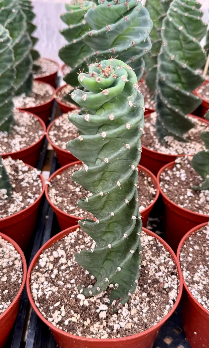 Introduce a touch of the extraordinary to your plant collection with the spiral cactus live plant, scientifically known as Cereus forbesii spiralis. This captivating succulent is celebrated for its truly unique and mesmerizing twisted growth pattern, where its normally vertical ribs spiral elegantly around the stem. Native to the arid landscapes of South America, this cereus forbesii spiralis specimen brings a piece of desert beauty indoors. Growing in a tall, columnar form, it develops a striking blue-green hue that adds visual interest to any room. While it can produce beautiful white flowers, these are rare when cultivated indoors, emphasizing its architectural form as its primary appeal. This rare cactus for sale is an excellent choice for plant enthusiasts seeking something out of the ordinary, offering both aesthetic charm and fascinating botanical characteristics.