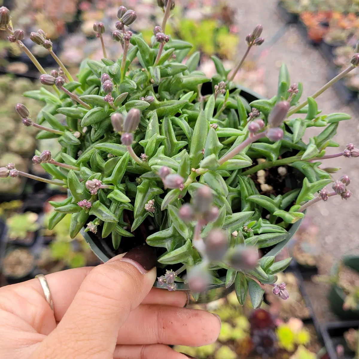 - Q: Is this plant easy to care for? A: Yes, the string of dolphins succulent is considered relatively easy to care for, making it suitable for beginners. Its main requirements are proper light, well-draining soil, and consistent, but not excessive, watering.