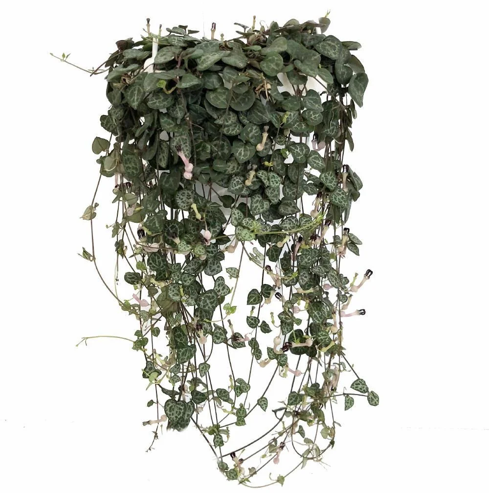 - Stunning Ornamental Appeal: The delicate, heart-shaped leaves and long, trailing vines of the Ceropegia woodii create a beautiful, cascading display, perfect for adding elegance to any room. Its marbled foliage provides year-round visual interest.