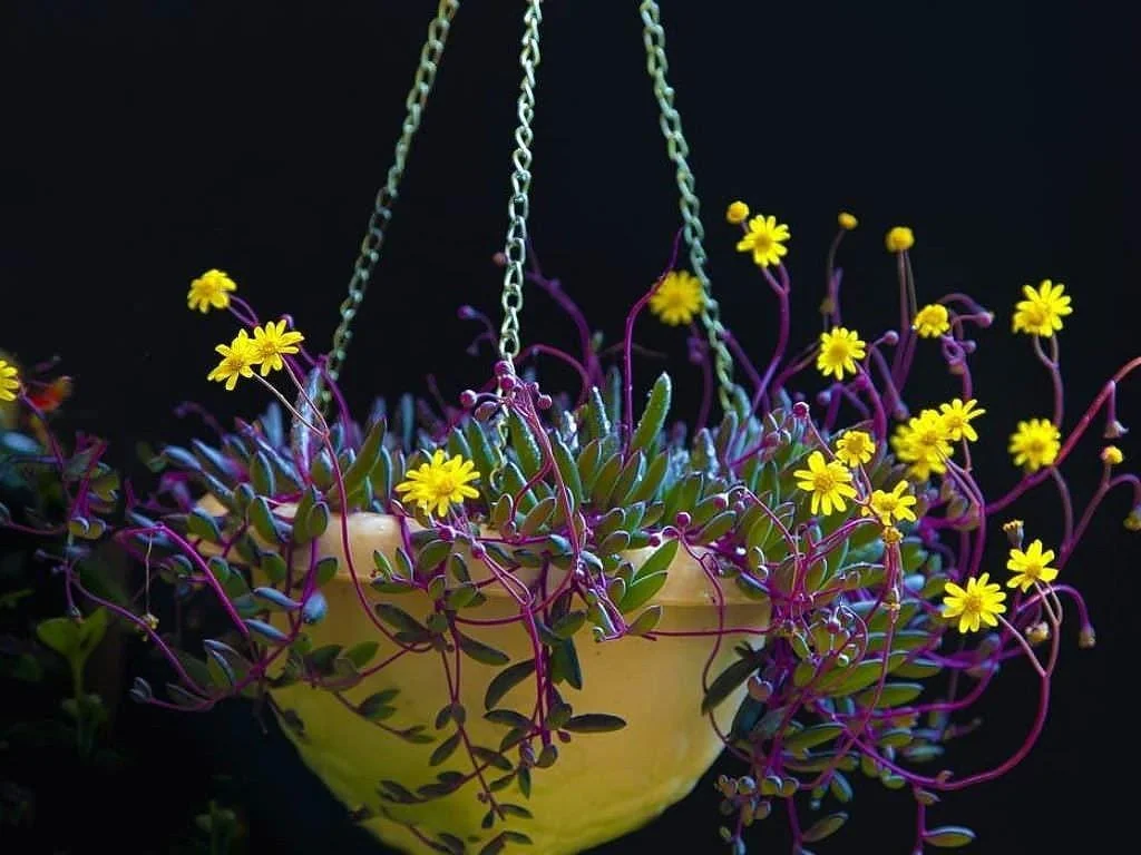 - Fast-Growing Trailing Habit: The Othonna capensis quickly develops long, cascading stems, making it perfect for hanging planters, elevated shelves, or as a spiller in mixed arrangements. Its graceful trailing form adds vertical interest and a sense of lushness.
