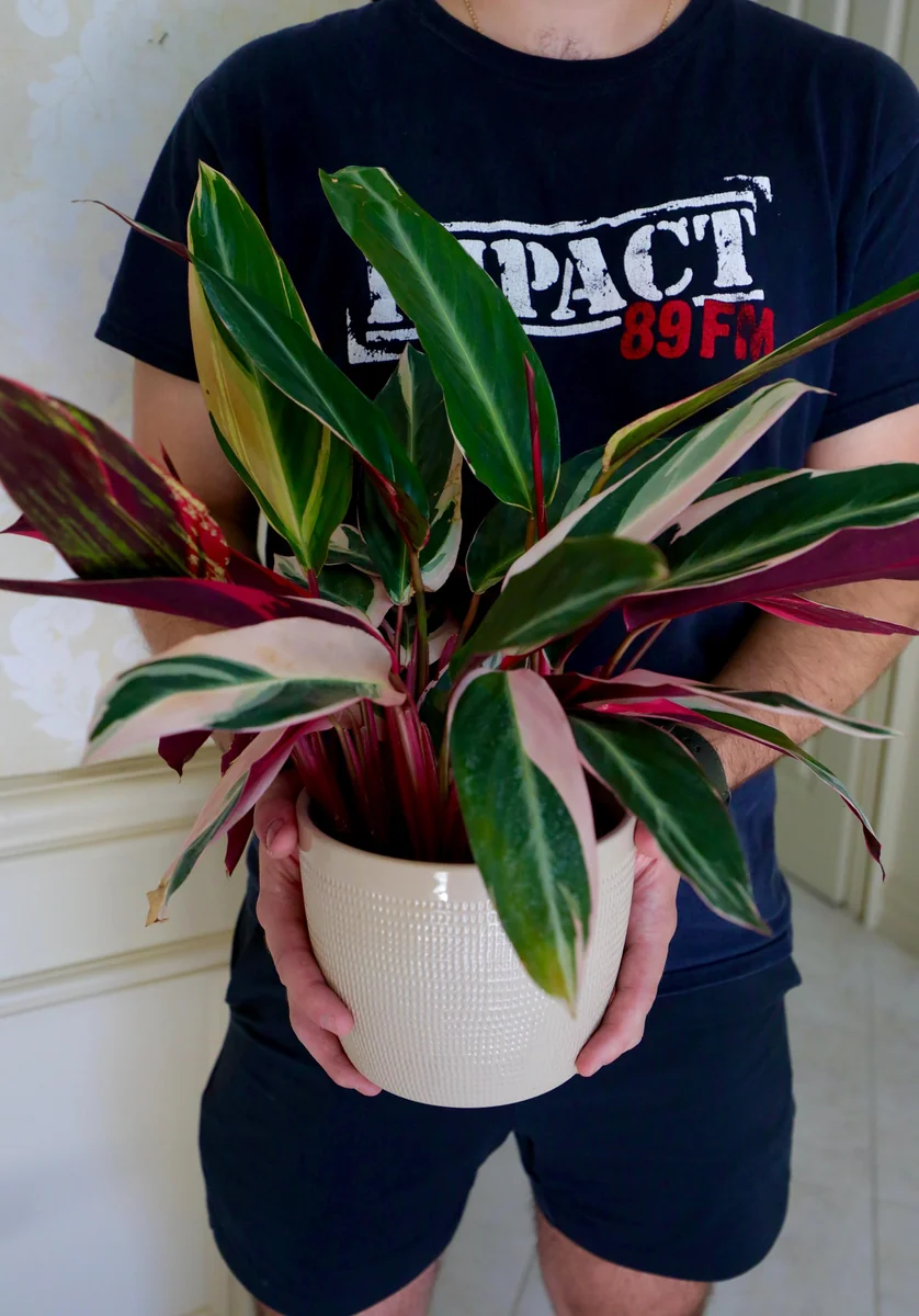 Introduce a splash of tropical beauty into your home with the exquisite stromanthe triostar live plant. Known for its dramatically variegated leaves, this plant showcases stunning shades of pink, green, and cream, creating a vibrant display. Often referred to as Stromanthe sanguinea or sometimes mistakenly as calathea triostar, this gorgeous plant is a true showstopper. Originating from the Brazilian rainforests, it brings a touch of exotic elegance to any indoor setting. As a living piece of art, it’s perfect for enhancing your living room, bedroom, or office decor, providing both aesthetic appeal and a calming presence. This robust and beautiful houseplant is delivered in a 6 inch grow pot, ready to adorn your space.