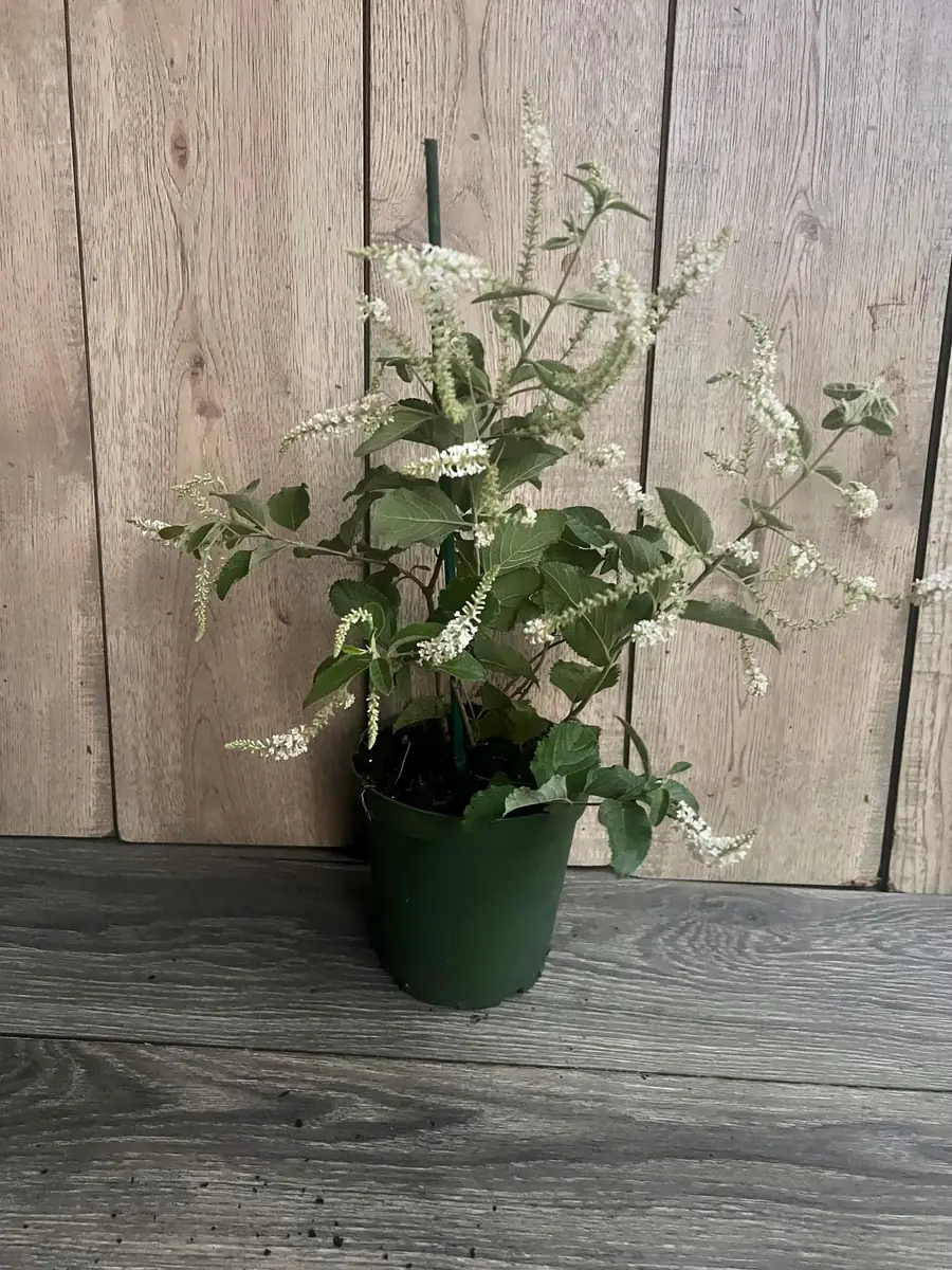 This sweet almond bush live plant is provided in a 6-inch pot, ready for planting in your garden or a larger container. When mature, the Sweet Almond Bush typically grows to a height of 4 to 6 feet with a similar spread, forming a beautiful, rounded shrub. Its growth rate is moderate, allowing it to establish itself well within a season or two when provided with optimal conditions. The plant features slender green stems that provide a graceful structure to its foliage and flowers. The fragrant white to pale lavender flowers appear in clusters, creating a striking visual and aromatic display in late summer and fall. This shrub is a perfect choice for creating a fragrant border or a lovely focal point in your landscape design, providing a delightful sensory experience for years to come.