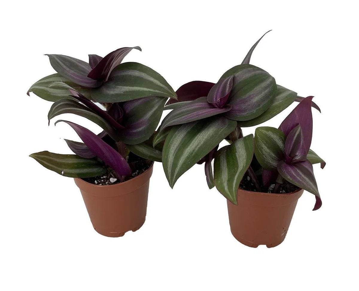 This product includes two individual Tradescantia live plant specimens, each carefully grown and shipped in its own 2-inch nursery pot. At the time of shipment, the plants typically stand between 3-6 inches tall, including the pot, with established root systems ready for continued growth. Tradescantia are known for their vigorous growth rate, and with proper care, they can quickly develop into impressive trailing plants, with vines reaching several feet in length. They are suitable for transplanting into slightly larger decorative pots or hanging baskets upon arrival, allowing their vining nature to truly shine. These young plants represent an excellent starting point for cultivating beautiful and lush indoor greenery, requiring minimal effort to flourish.