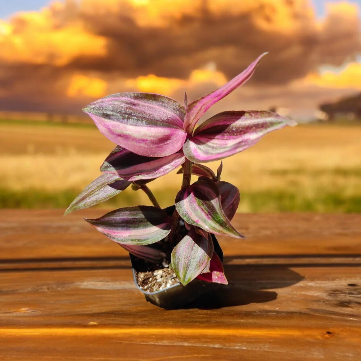 While specific dimensions can vary, a typical young plant will have multiple stems, each ranging from 4 to 8 inches in length upon arrival, ready to establish quickly. It is often provided as a bare root plant or in a small nursery pot, allowing for easy transplanting into your preferred decorative container. With proper care, your variegated wandering jew will quickly develop into a lush, full plant, continuously producing its signature colorful foliage and expanding its beautiful trailing habit.