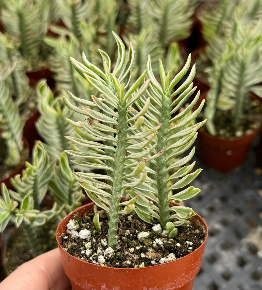 The variegated Devil’s Backbone is a conversation starter, offering year-round interest with its vibrant coloring. It’s a fantastic choice for those seeking a plant with architectural form and low-maintenance requirements. Its resilience and striking appearance make it a favorite among succulent collectors and those looking to enhance their living spaces with unique botanical specimens. Embrace the allure of this fascinating plant and enjoy its effortless beauty.