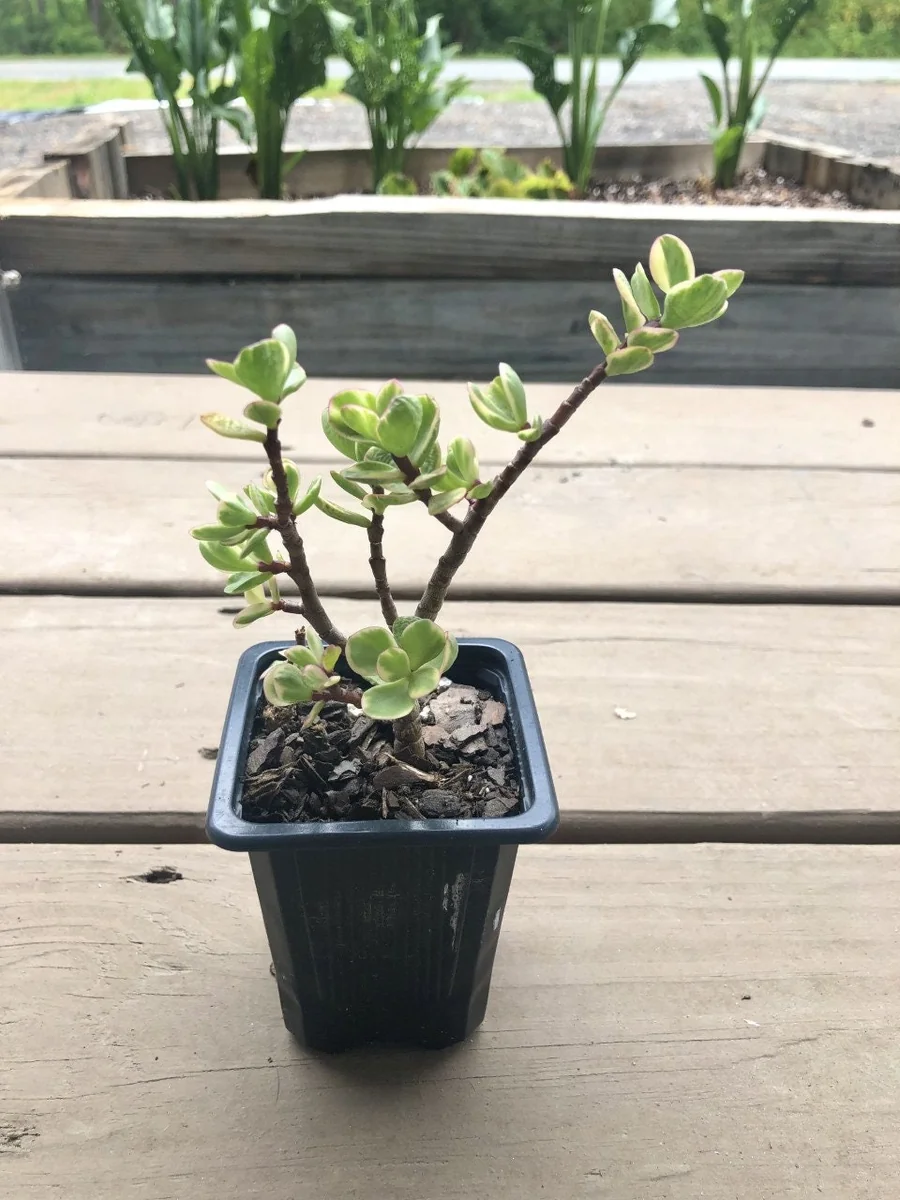 This offering is for one variegated elephant bush live plant, cultivated in a 2.5 inch nursery pot. This compact size makes it perfect for starting a new collection, adding to an existing succulent arrangement, or placing on a desk or windowsill. The plant typically arrives well-rooted and established, ready for its new home. While growth rates can vary based on conditions, Portulacaria afra is known for its relatively fast growth compared to many other succulents, especially when provided with ample light and appropriate care. With proper care, it can grow into a small shrub-like plant, often reaching a height of 1 to 3 feet indoors, though it can grow much larger in ideal outdoor conditions. Its woody stems and dense foliage provide a substantial appearance even at a young age.