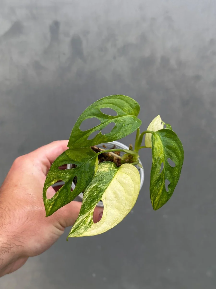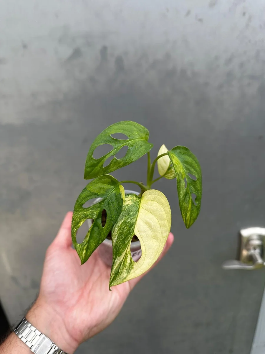 - Unique Fenestrations: Like its non-variegated counterpart, this plant develops natural holes and splits in its leaves as it matures, earning it the charming nickname ‘Swiss Cheese Vine’. This adds to its exotic and intriguing appearance.
