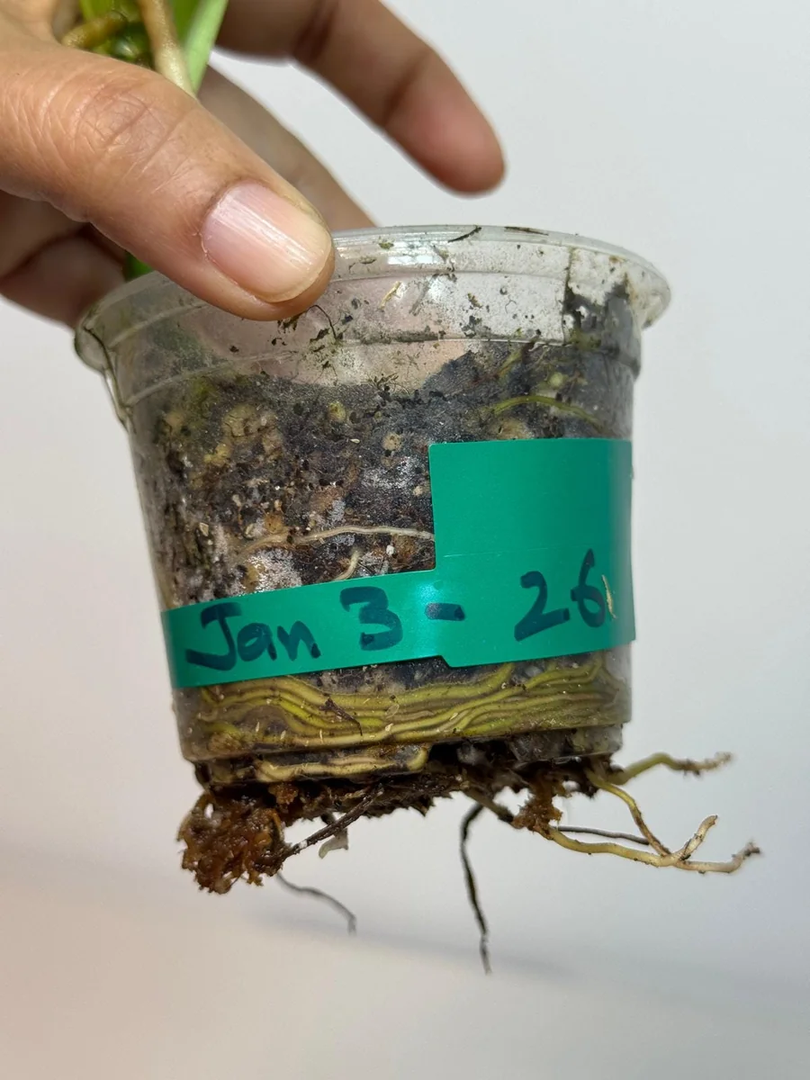 Water: Water your plant when the top 1–2 inches of soil feel dry to the touch. It’s important to allow the soil to dry out slightly between waterings to prevent root rot. Do not overwater, as persistently wet soil is detrimental to aroids. Ensure your pot has adequate drainage holes to allow excess water to escape. In general, more frequent watering may be needed in warmer months and less in cooler months.