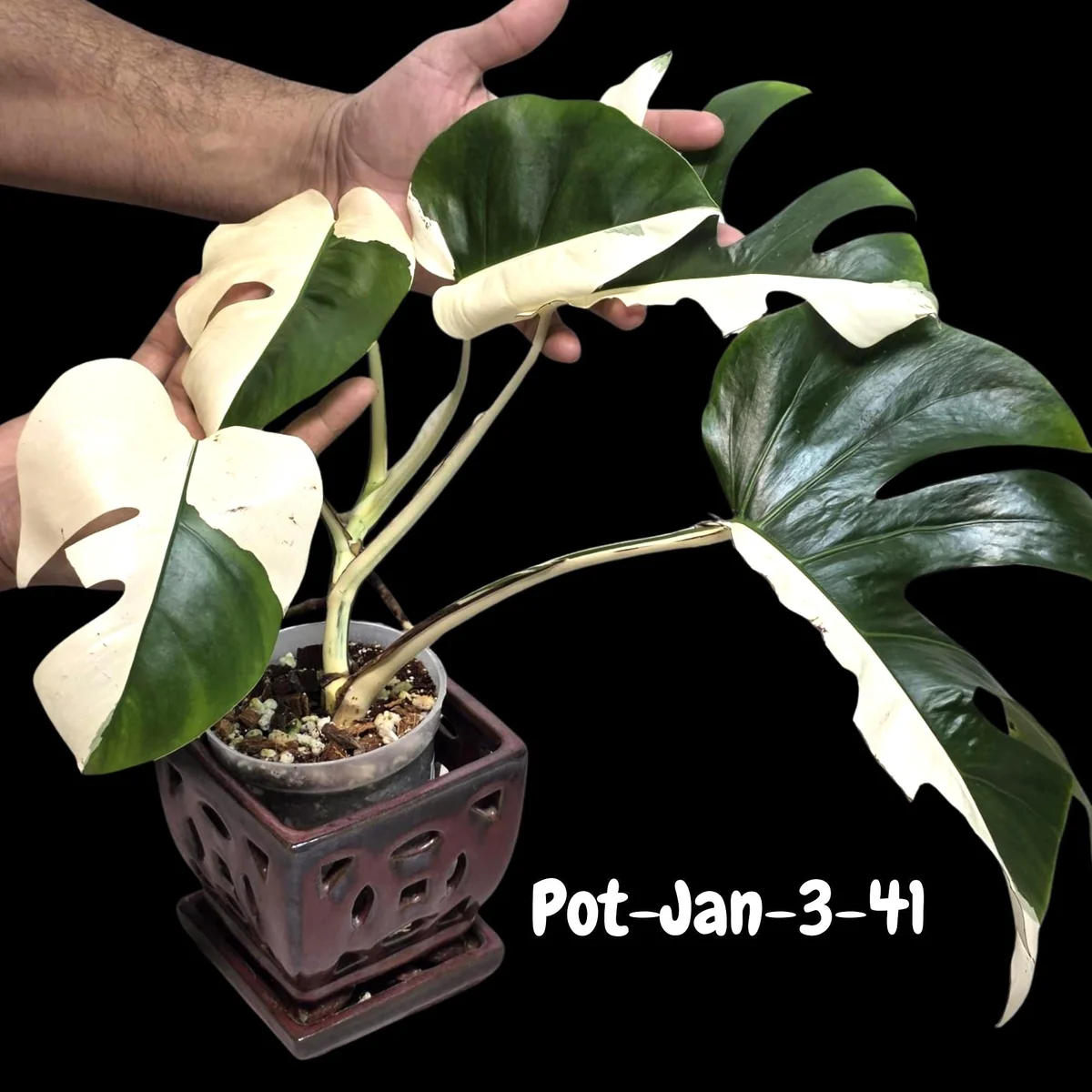 - Q: What condition will it arrive in? A: Your variegated monstera albo live plant will arrive as a healthy, well-rooted specimen, carefully packaged to ensure its safety during transit. It will be established in a nursery pot, ready for you to acclimate it to its new home.