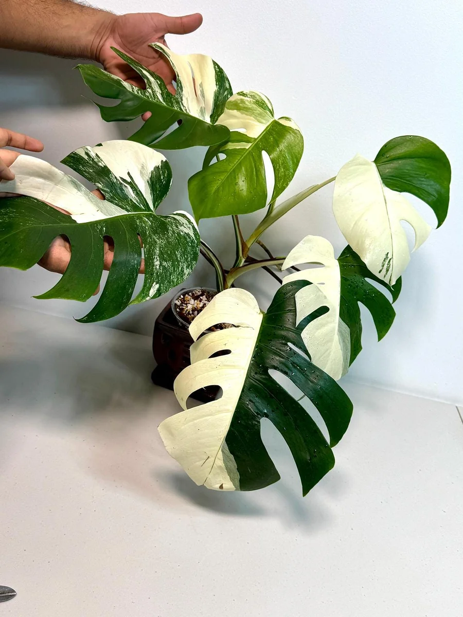 - Stunning Aesthetic Appeal: Each leaf features a unique pattern of white and green variegation, making your plant a one-of-a-kind piece of living art that instantly brightens any room. The large, fenestrated leaves develop characteristic splits as they mature, adding to its exotic charm.