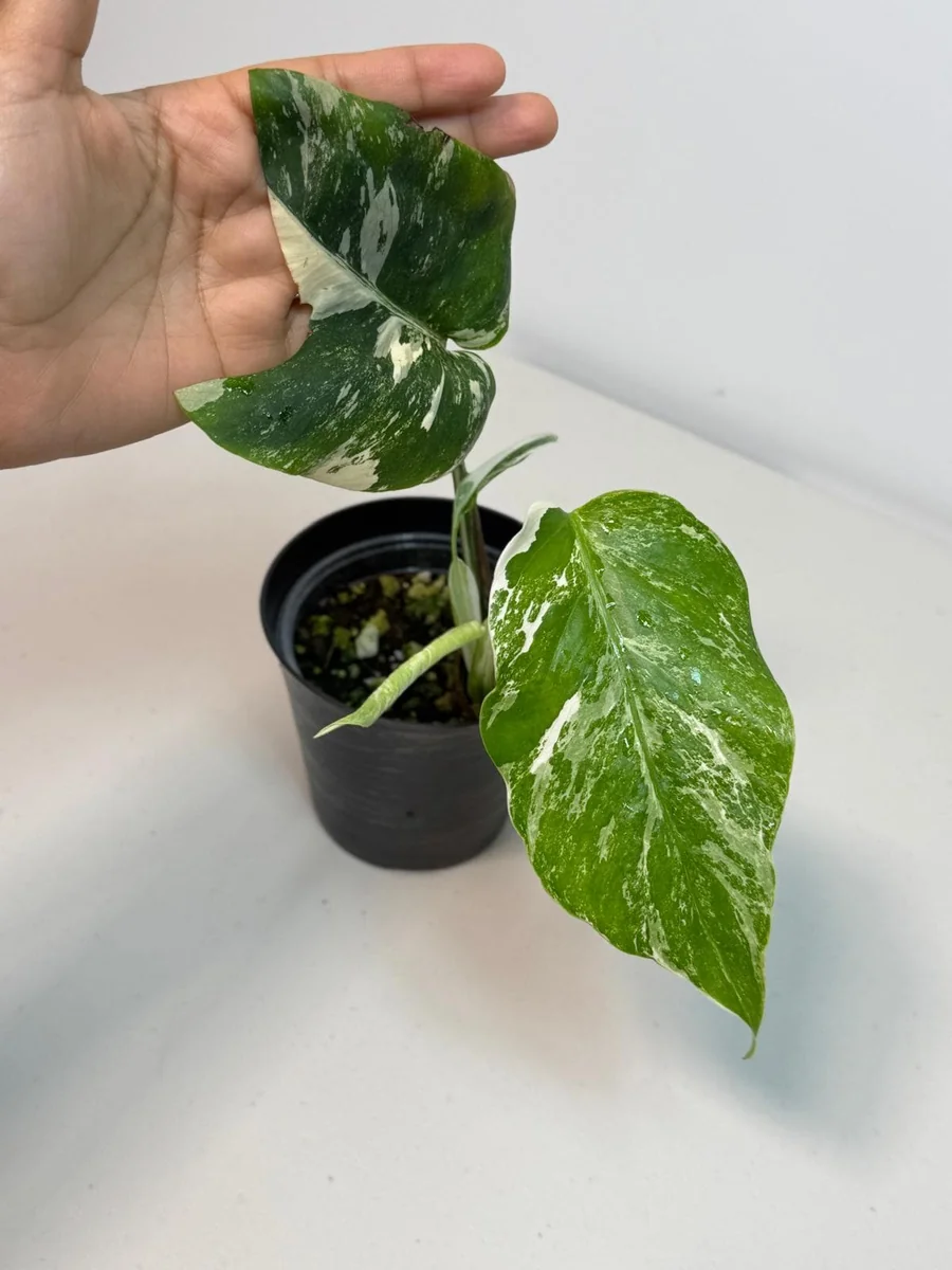 This offering is for a single variegated monstera albo live plant, which varies in size depending on its maturity and specific growth habit. Typically, these plants arrive as young specimens, often with 1-3 established leaves and active growth points, ready to continue their development in your home. While exact dimensions can vary, you can expect a plant that is generally compact enough to fit on a desk or shelf initially, with the potential to grow significantly larger over time with proper care. These plants are shipped in their nursery pots, often 4-inch or 6-inch containers, to minimize transplant shock and ensure a smooth transition to your environment. The growth rate of a rare monstera albo is moderate, allowing you to enjoy its development without it outgrowing its space too quickly. With ideal conditions, this plant can develop into a magnificent specimen, showcasing its stunning foliage and impressive fenestrations as it matures. The precise plant you will receive is the one depicted in the listing photos, guaranteeing its unique variegation.