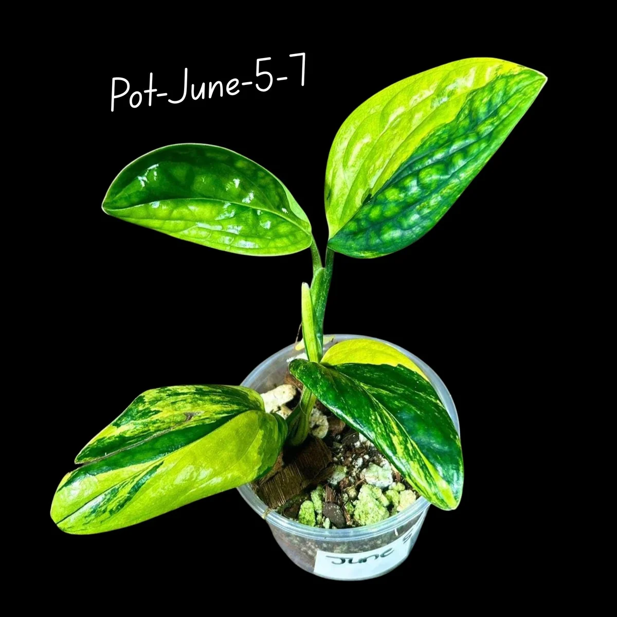 The plant is sent in its original nursery pot, which provides a stable environment for transit and allows for easy acclimation upon arrival. We recommend repotting into a slightly larger pot with a fresh, well-draining aroid mix once the plant has settled into its new environment, usually within a few weeks. Expect moderate growth, with new leaves unfurling regularly during the active growing season. The distinctive texture and variegation will become more pronounced as the plant matures. This plant is a fantastic investment for anyone looking for unique variegated plants.