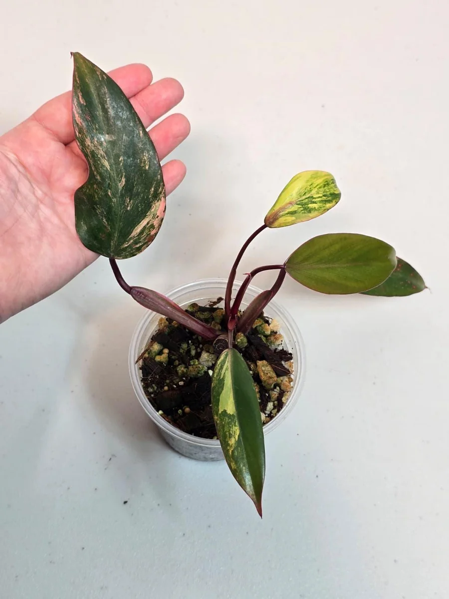 It is shipped in its nursery pot, which provides a stable environment during transit. The plant is well-rooted and actively growing, often with several leaves already displaying the characteristic ‘strawberry shake’ variegation. With proper philodendron care, this indoor collector plant will continue to mature, potentially growing into a substantial and impressive specimen over time. Expect a moderate growth rate, with new leaves unfurling regularly under optimal conditions. This rare philodendron plant is a long-term investment in botanical beauty.