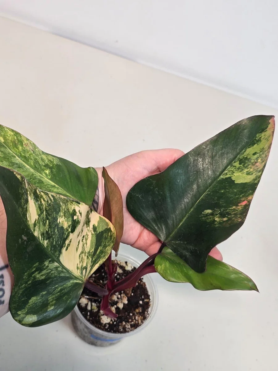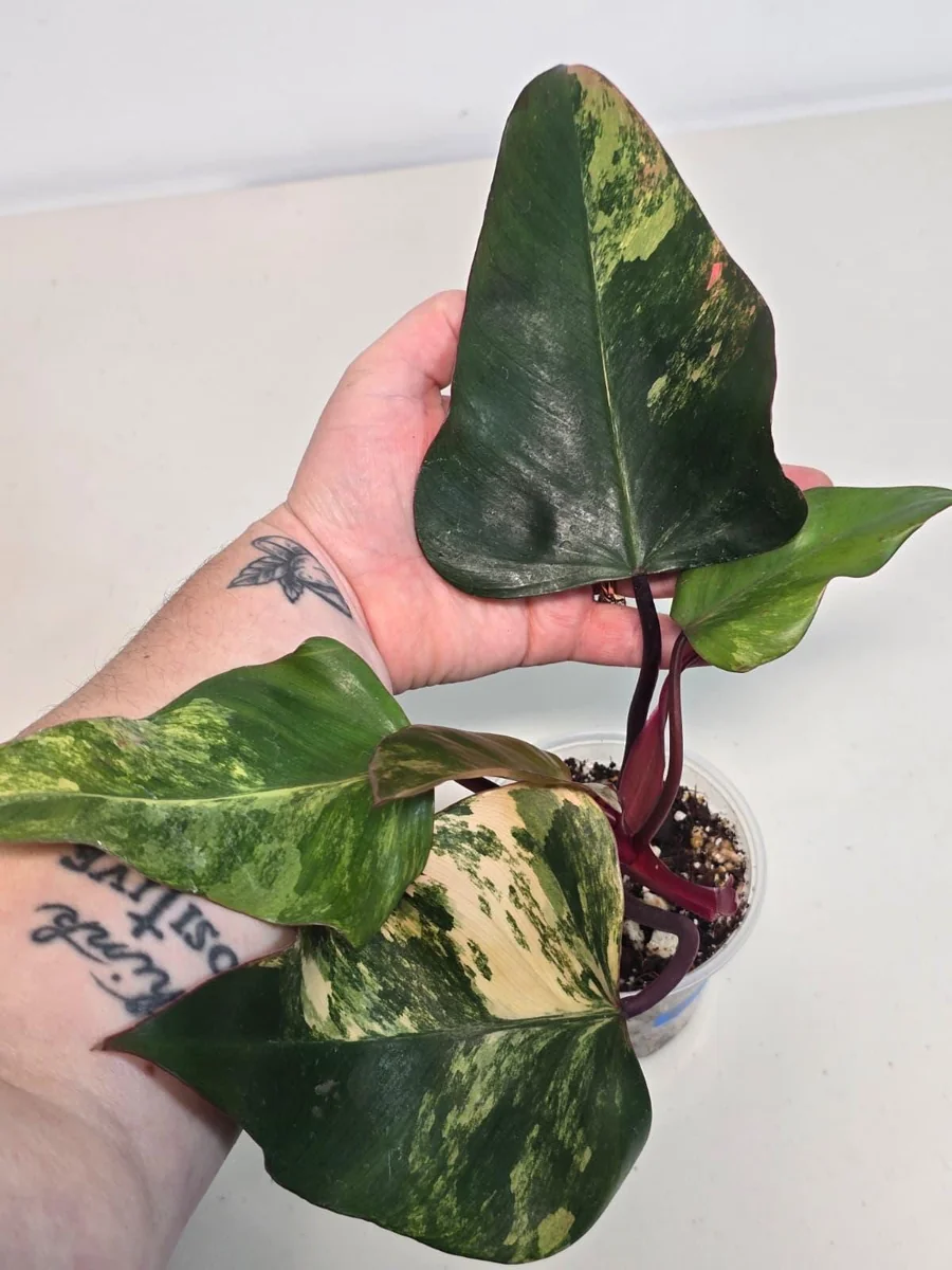 Introduce an extraordinary touch to your indoor plant collection with the variegated philodendron strawberry shake. This highly sought-after live plant is renowned for its breathtaking foliage, featuring large, heart-shaped leaves that display an incredible tapestry of colors. Each leaf is a unique masterpiece, predominantly green, yet adorned with striking splashes of creamy white, delicate pink, and rich burgundy red. The vibrant ‘strawberry shake’ variegation makes this philodendron a true collector’s gem and a captivating conversation starter. Ideal for anyone looking to enhance their living space with a rare and visually stunning botanical specimen, this rare philodendron plant thrives indoors, adding a tropical flair to any room.