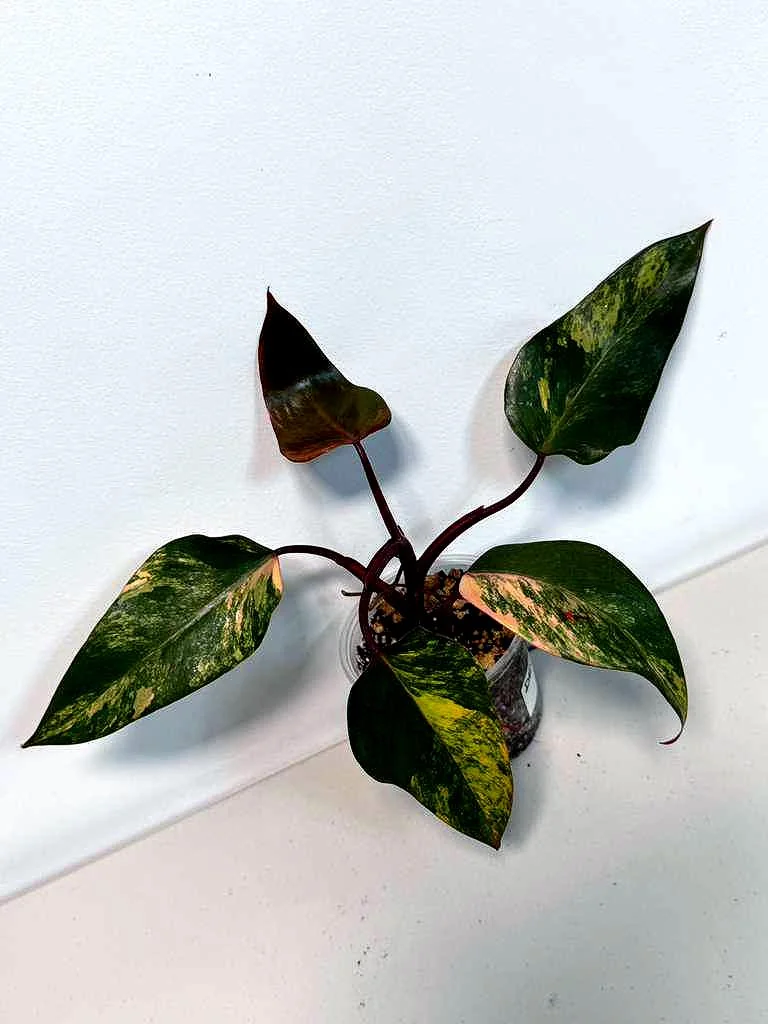 - Stunning Variegation: The most striking feature of this plant is its incredible variegation, featuring splashes of creamy white, pink, and burgundy red against a green backdrop. This creates a dynamic and ever-changing display that adds unique visual interest to any indoor setting, making it a true philodendron collector plant.