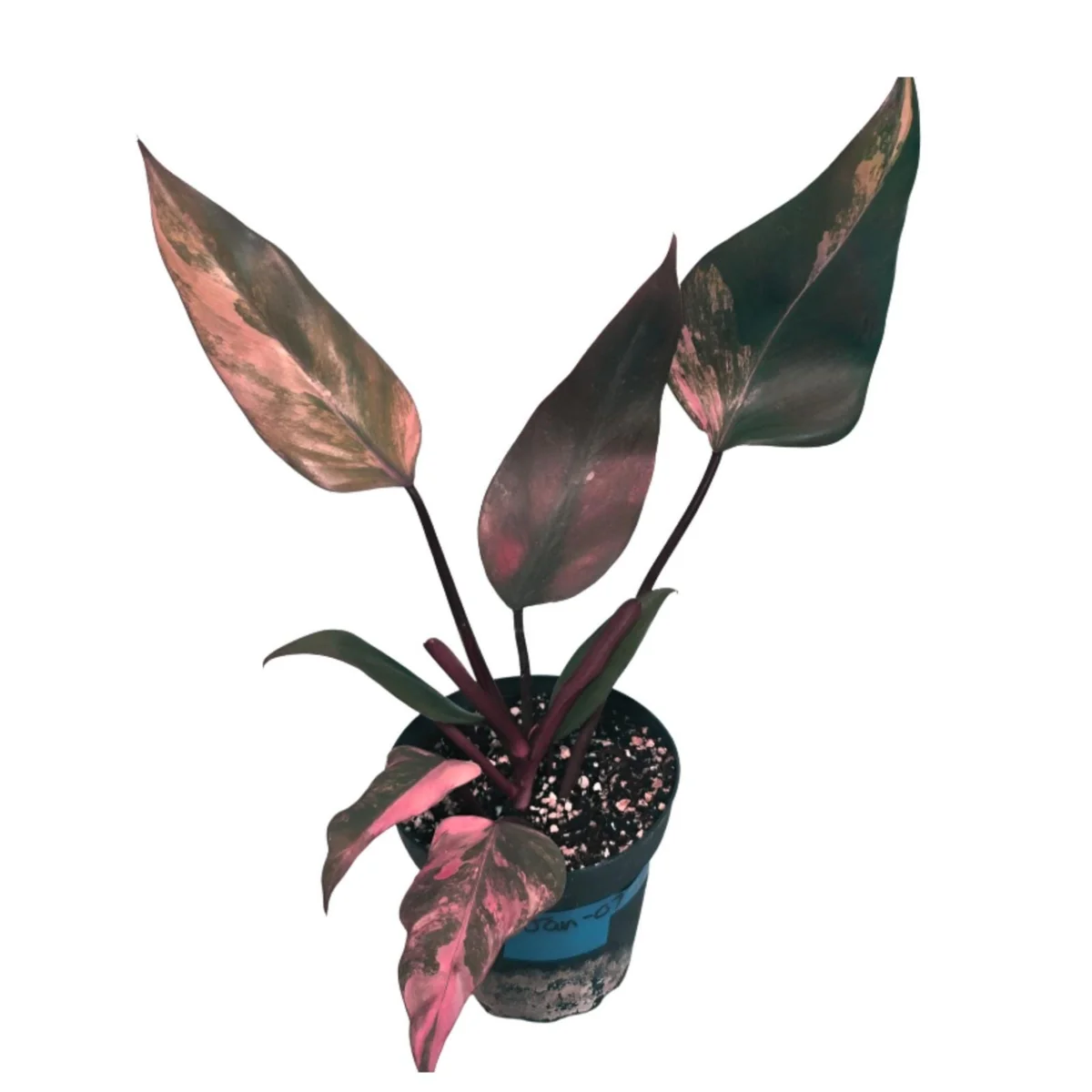 The variegated philodendron strawberry shake is a live plant specimen, carefully cultivated to showcase its distinctive features. While specific dimensions can vary, the plant you receive will typically be a healthy, actively growing specimen with established roots and several variegated leaves, similar to those depicted in images. These plants are known for their moderate to fast growth rate under ideal conditions, developing into impressive specimens over time. Expect the leaves to unfurl with a unique blend of green, cream, and varying shades of pink and red. This rare philodendron pink plant is shipped in a nursery pot, ensuring its safety during transit and providing a good starting point for its new home.