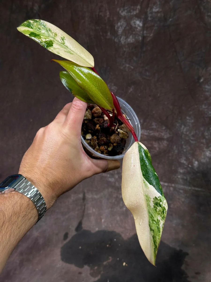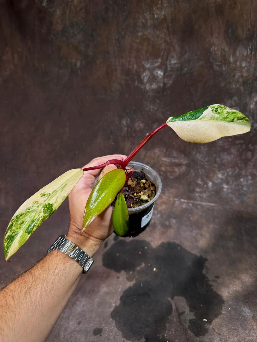The variegated philodendron strawberry shake is a highly sought-after live plant renowned for its breathtaking foliage. This exquisite aroid features large, heart-shaped leaves adorned with a stunning blend of creamy white, vibrant pink, and deep burgundy-red splashes against a rich green background. Each leaf is a unique work of art, making the variegated philodendron strawberry shake a true collector’s item and a focal point in any indoor setting. Originating from tropical regions, this philodendron thrives in conditions that mimic its natural habitat, offering a touch of exotic beauty to your home or office. Its striking coloration and relatively easy care requirements make it a favorite among both novice and experienced plant parents looking to expand their collection with a truly special specimen. The dynamic color palette ensures that no two leaves are exactly alike, providing endless visual interest and a constantly evolving display of natural artistry.