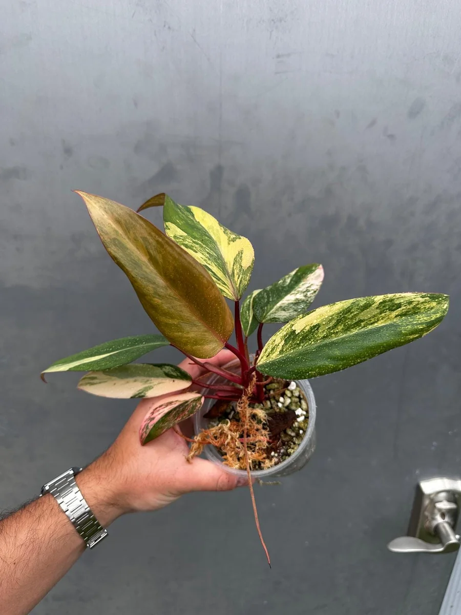 Introduce an extraordinary botanical specimen to your indoor jungle with the variegated philodendron strawberry shake. This live plant is a highly sought-after cultivar known for its mesmerizing foliage. Each heart-shaped leaf is a natural work of art, displaying a vibrant tapestry of green, creamy white, delicate pink, and rich burgundy red hues. Philodendron Strawberry Shake is a tropical aroid, making it a fantastic choice for enthusiasts looking for a piece of living art. Its unique coloration and relatively manageable care requirements make it a rewarding addition for both seasoned collectors and those new to the world of rare houseplants. This particular plant is a true gem, offering an unparalleled visual appeal that transforms any living space into a botanical sanctuary.